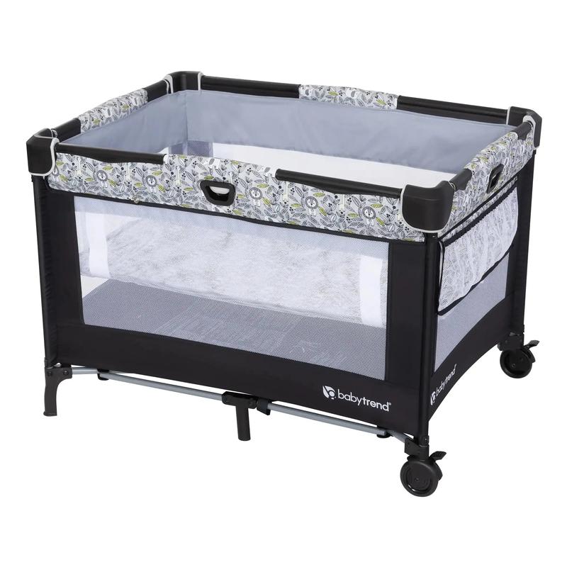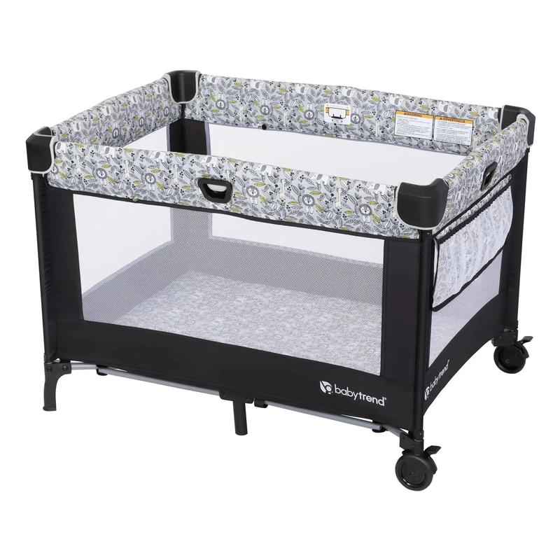 The removable full-size bassinet transforms into a convenient play time center as your child grows. The integrated Fold-Assist Technology includes a flex cord mechanism for effortless set-up and takedown of the playard frame. The soft tire wheels with brakes provide added mobility and stability wherever your Nursery Den may go. The compact fold easily fits into the included tote bag for easy travel.