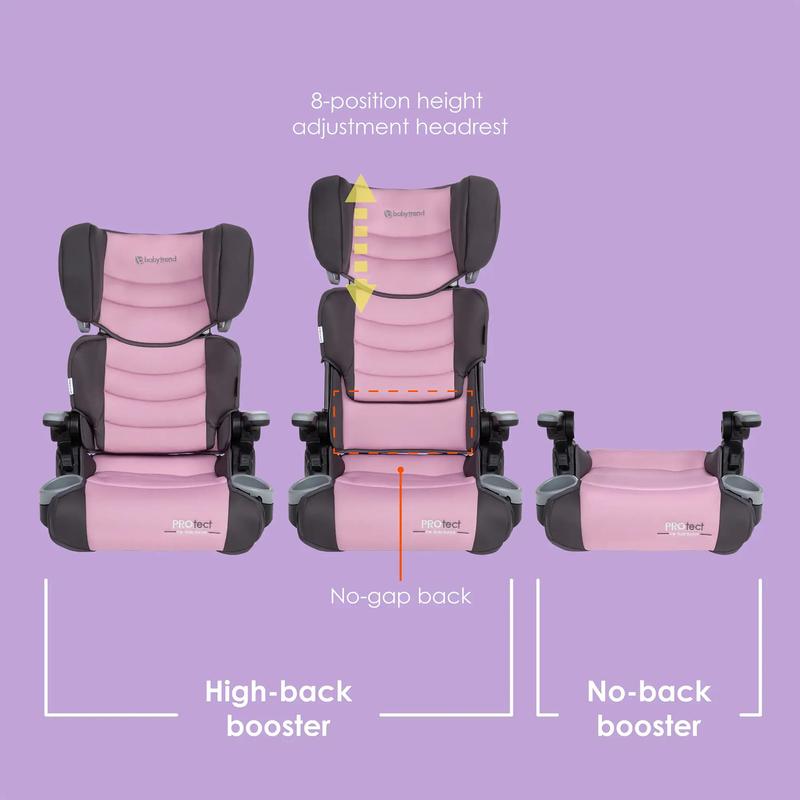 The Baby Trend® Protect 2-in-1 Folding Booster Car Seat is designed to accommodate the growing needs of your child. Your new favorite travel companion effortlessly converts from a high-back booster to a no-back booster when your child gets bigger. It also conveniently folds compact for easy transport and fits perfectly in aircraft overhead compartments.
