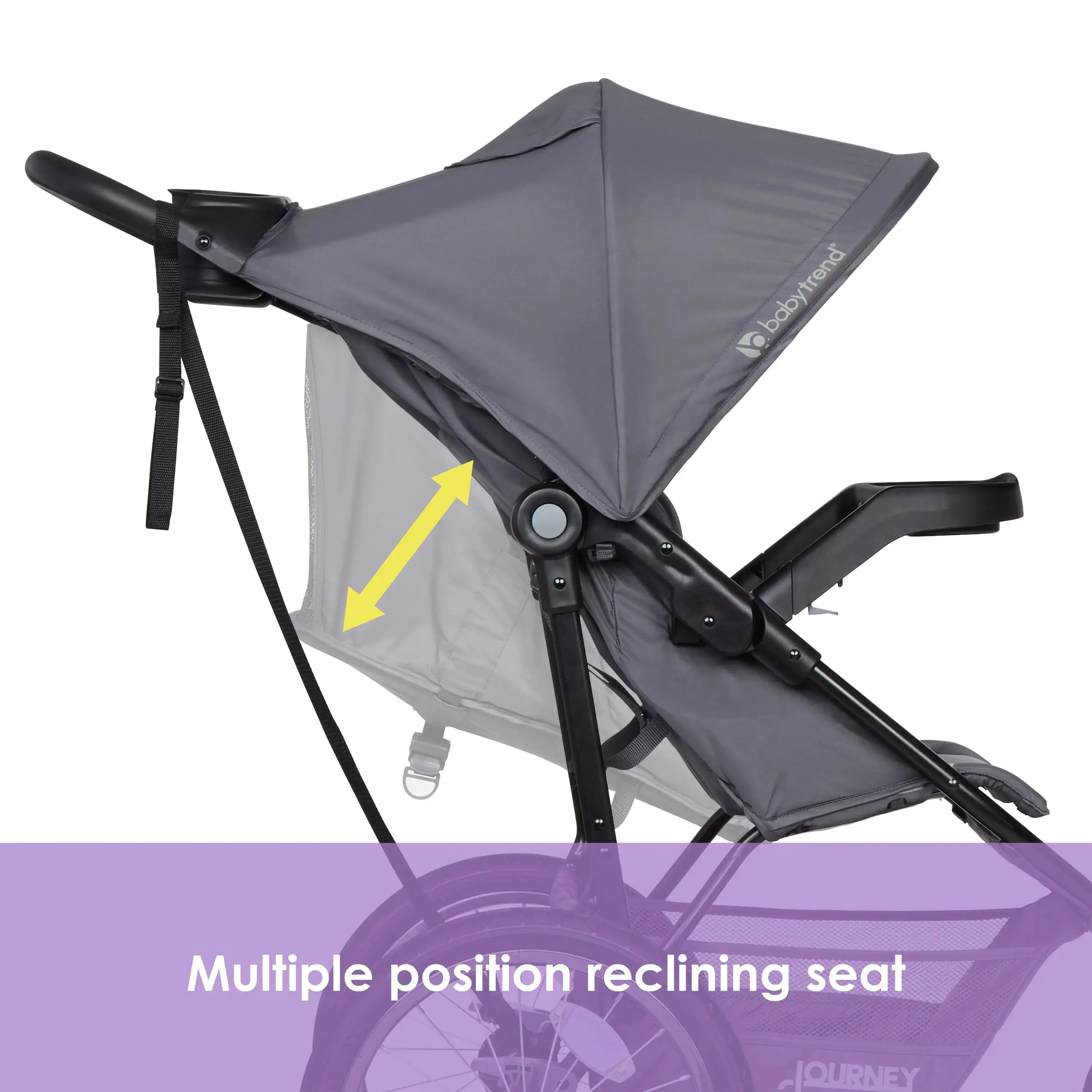 The Baby Trend® Journey Jogger Travel System makes every outing a fun activity. The parent tray, with two cup holders and a center console, offers a large space to keep your essentials. The child tray features cup holders and a snack area, so your little one can enjoy some treats while exploring the world.