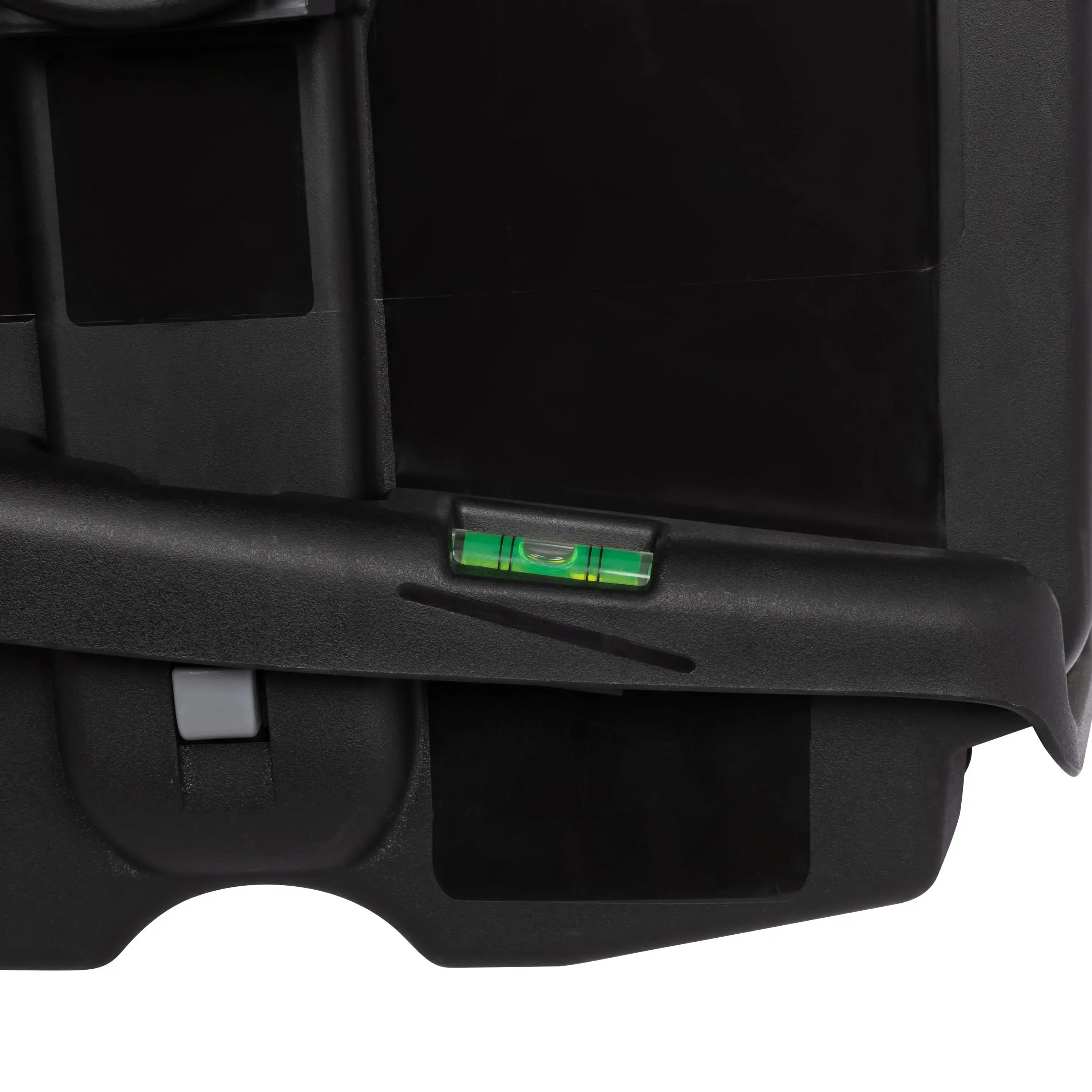 ·Car seat includes base with recline flip foot and bubble level indicator.
