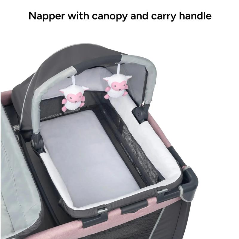 ·Removable Rock-A-Bye Bassinet comes with canopy and carry handle, plush fabric and mesh sides for proper ventilation.