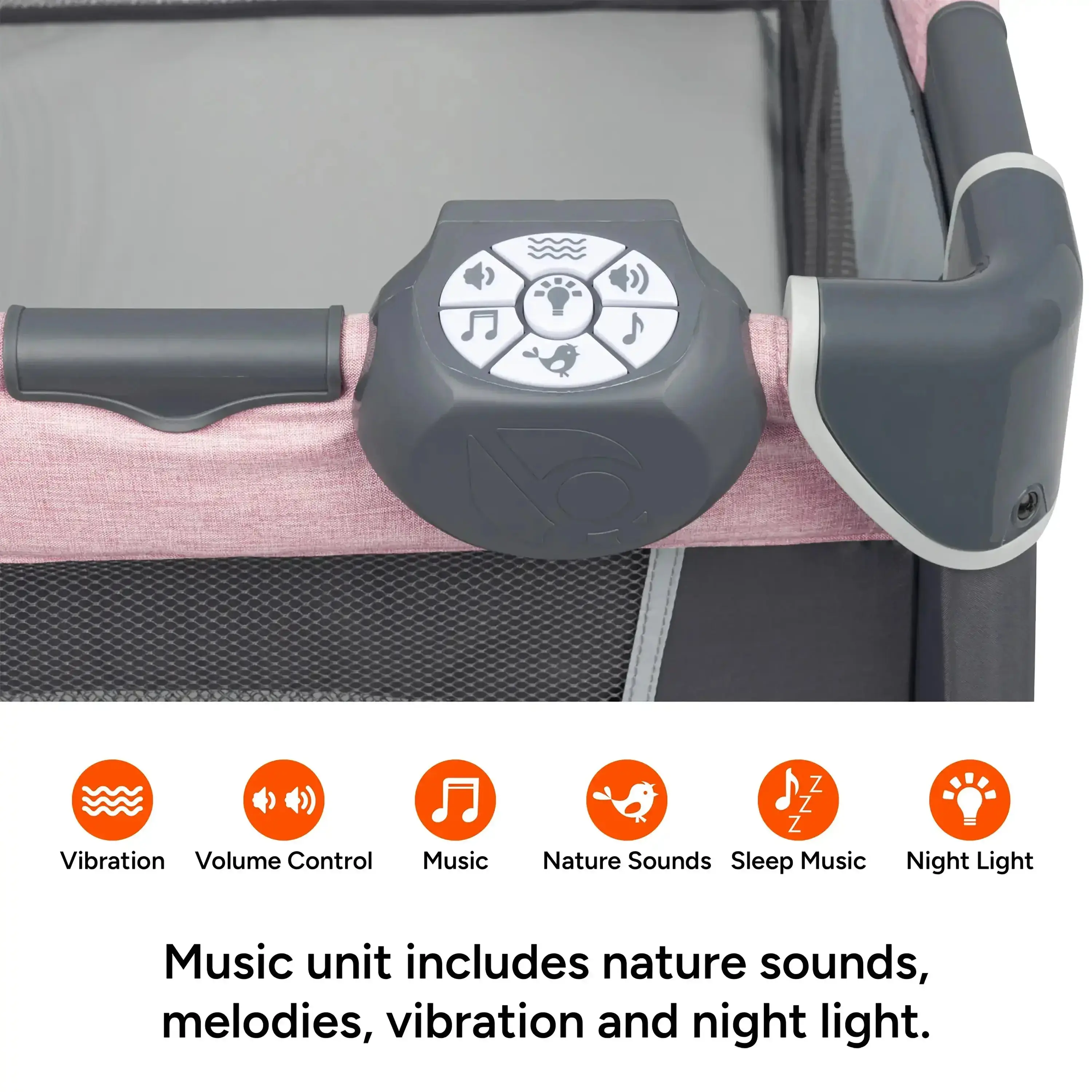 ·Electronic music center with volume control, nightlight, and vibration.