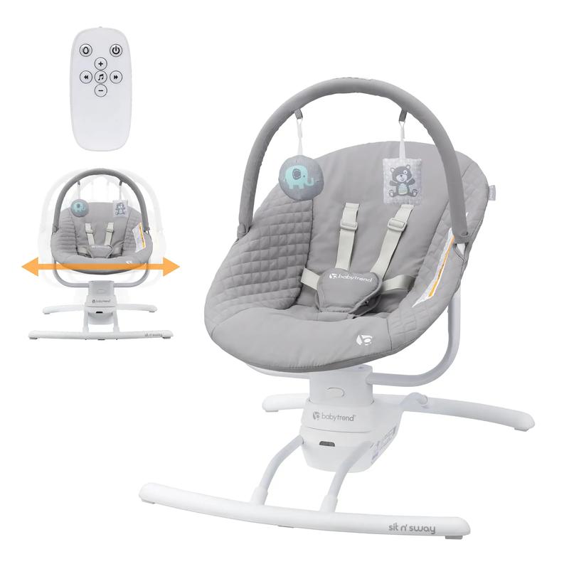 The world is bustling, but the Baby Trend® Sit N' Sway Swing will bring comfort and tranquility to both you and your little one. The Sit N' Sway features three swaying speeds and eight melodies to keep your baby calm and entertained. The padded seat and the 5-point safety harness ensure both comfort and safety. Two hanging toys captivate your little one’s attention, encouraging them to reach and interact. The headrest and toy bar can be adjusted or removed to accommodate your baby’s growth and make storage easier.
