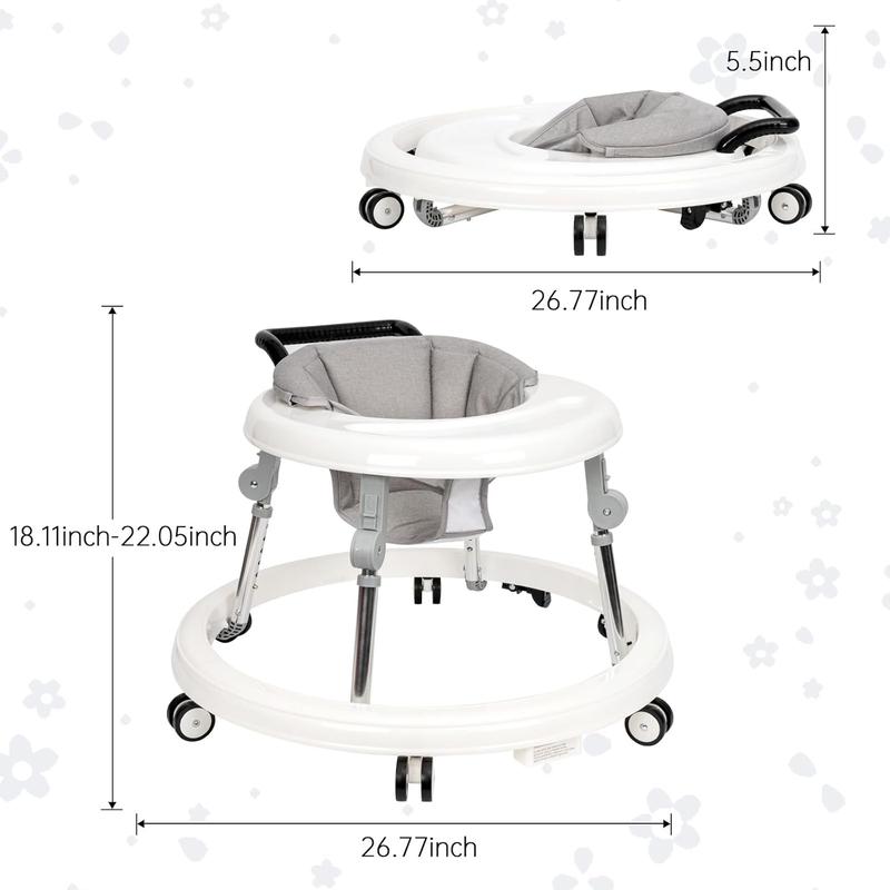 ·[Foldable storage]: Baby walkers have foldable support arms that can be easily folded and installed without any tools. At the same time, baby walker portable is small and easy to carry and store. Expansion Size: 25.2"(L)*18.11"(W) *"15.75-18.5"(H) for toddlers 7 to 18 months of age. Folded Size: 25.2"(L)*3.94"(H). Please confirm the baby's height before purchase. It can support a 30-pound baby.