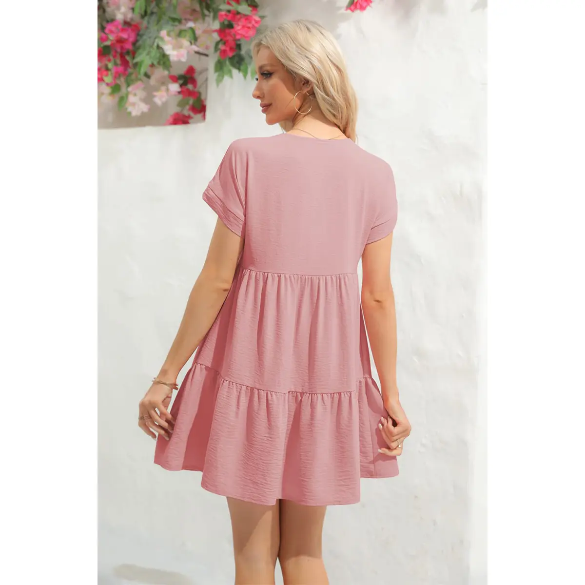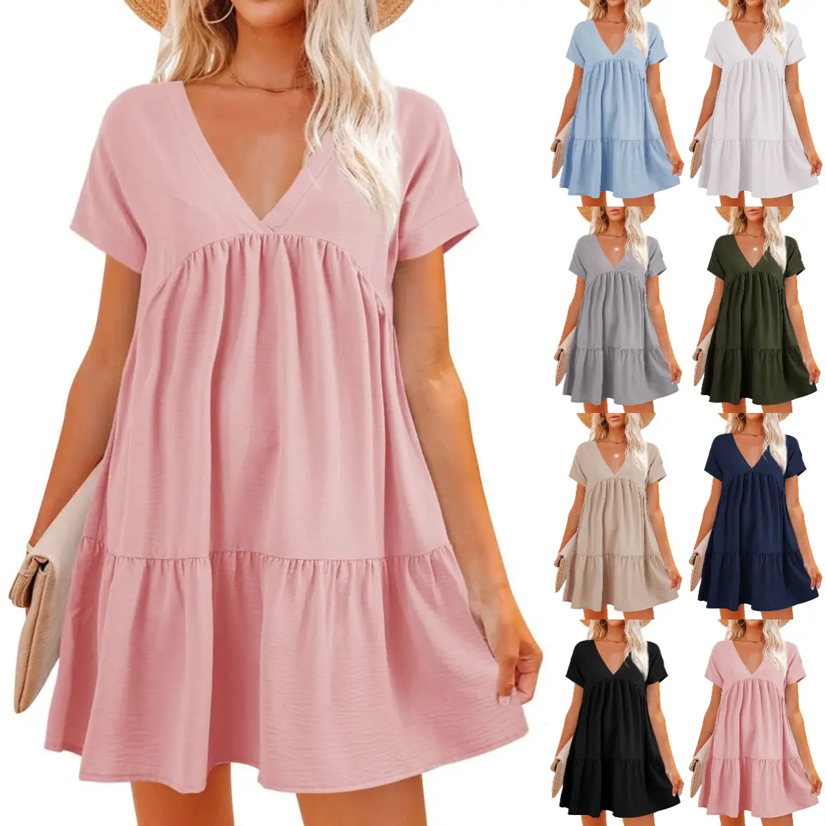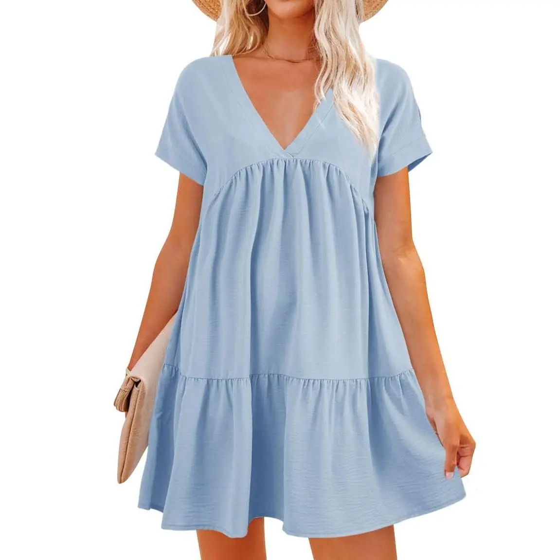 ·【Feature】Tunic summer dresses for women,petite summer dresses,sexy v neck design dress, dresses for women 2025,casual women dresses,solid color short sleeve dress, women's petite dress,dresses for teens,loose party dress,a-line knee length mini sun dress, boho pleated dresses swing.