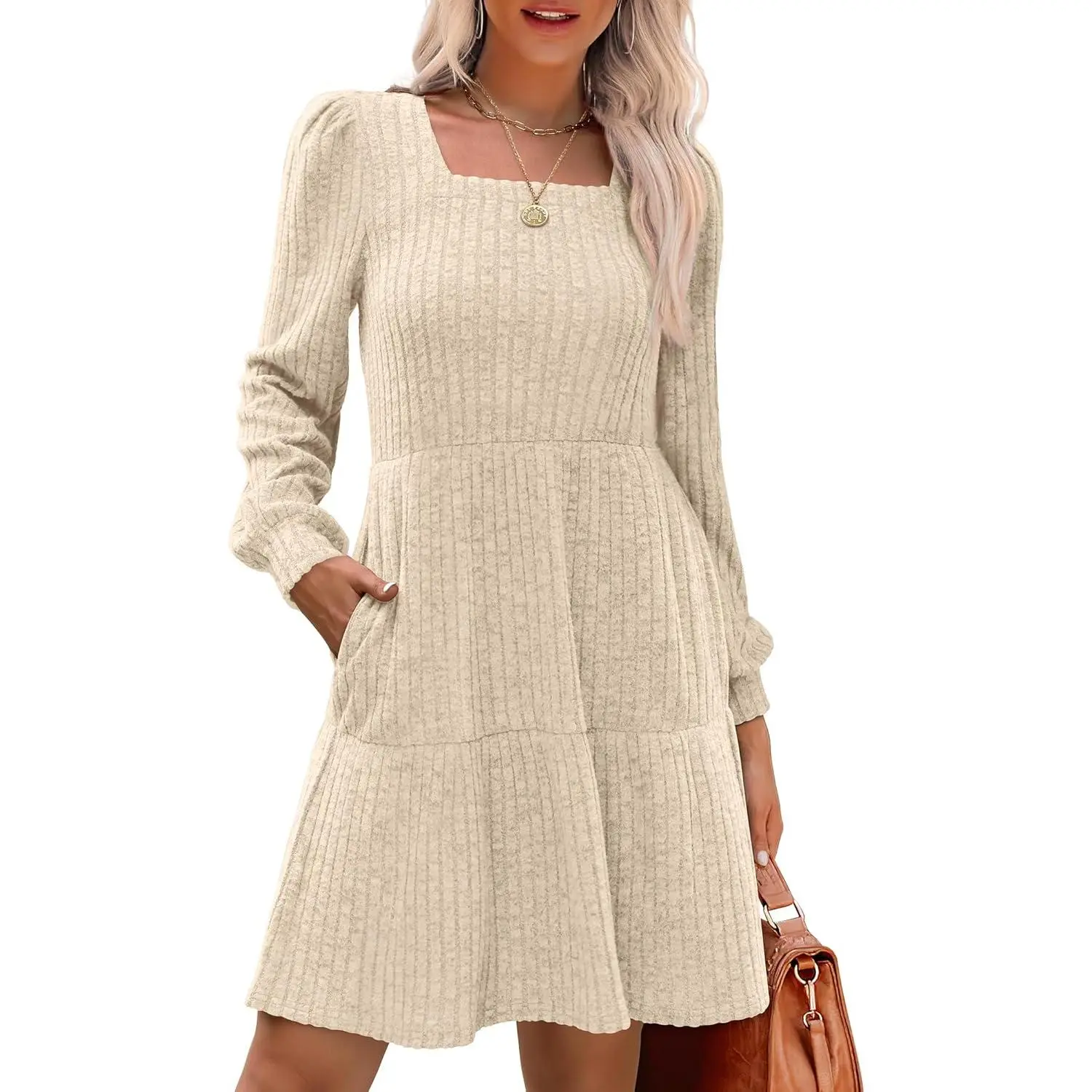 🌟 Square Neck Lantern Sleeve Dress 🌟
