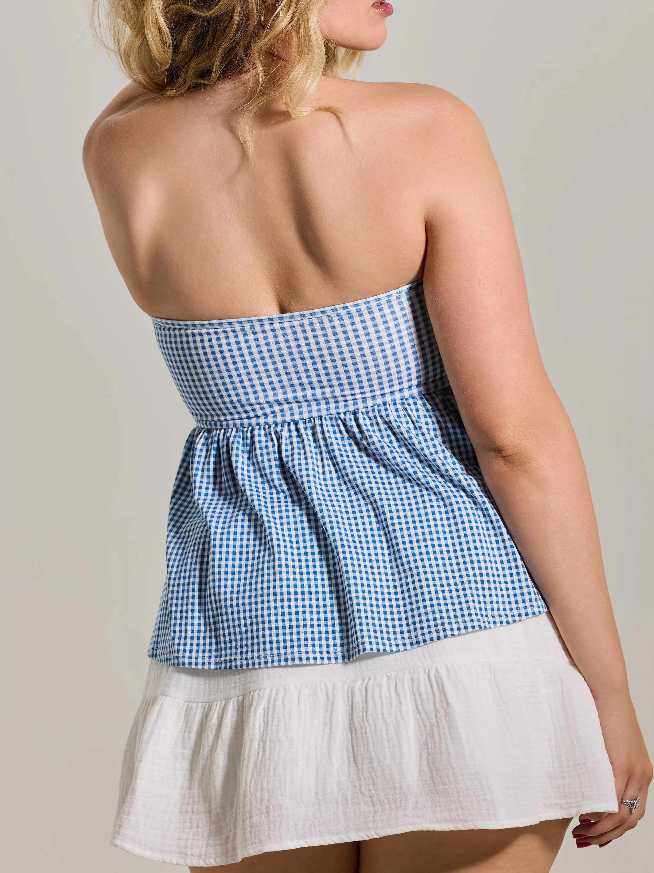 I originally purchased this top in the black polka dot and I loved it so much I went back for the pink. Even though it’s a tube top, I don’t feel like I have to constantly pull it up or adjust it. Love the removeable pads since I hate wearing a strapless bra. The flowy baby doll is very feminine and perfect for days where I want something more loose in the stomach area.