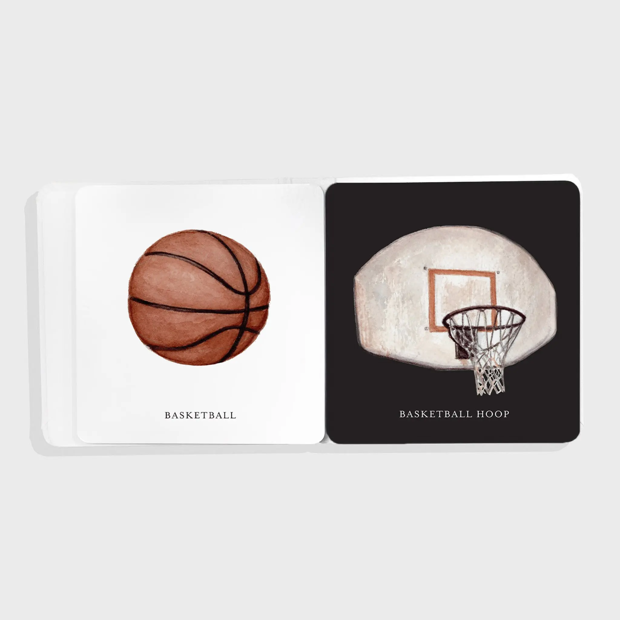 Infants are born with limited vision and respond best to bold images, which makes this high-contrast board book an ideal first book for developing eyes. Featuring fine art illustrations of classic sports gear—like soccer balls, baseball gloves, footballs, and more—this book introduces babies to the exciting world of sports from day one.