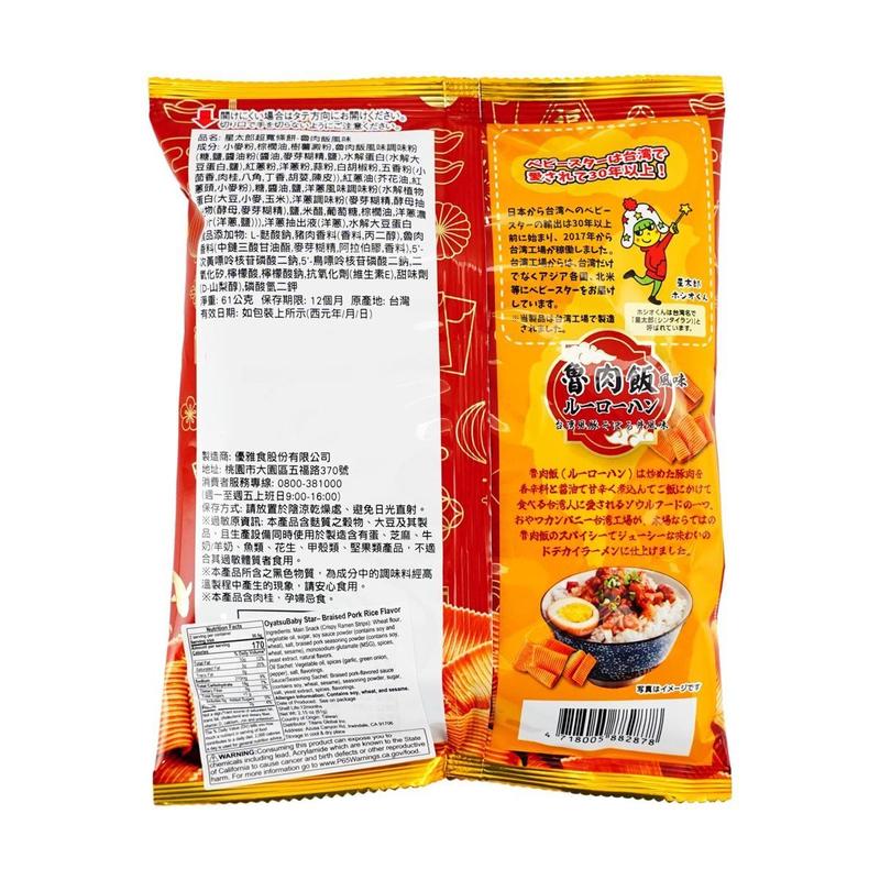BABYSTAR Japanese Snack Noodles - Star Taro Braised Pork Rice Flavor, 61g Crispy Dry Ramen for Kids & Adults, Unique Japanese Savory Treat