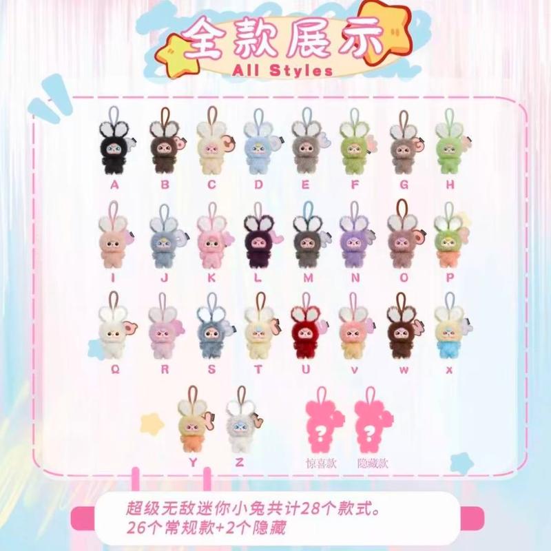 ·Image Description: The image shows the super mini bunny plush and vinyl keychain in a blind box.