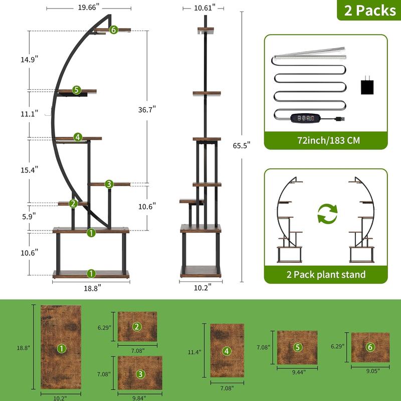 ·【Great Present for Plant Lovers】 Designed with a curved shape like the half-moon, this floor plant stand with light (includes two shelves) is a unique and artistic addition to your home beauty. You can place it in your living room, bedroom, porch, balcony, etc. And place many decorations, not just plants. It is also a creative indoor garden present for yourself, your family or friends.