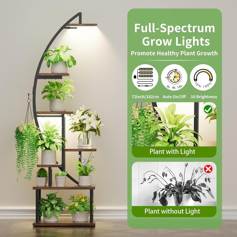 ·【Plant Stand with Grow Light】 In order to promote plants healthy growth, we have equipped growth lights for our plant shelf to meet the light conditions your plants need most in different stages. Dual head grow lights ensure that plants on all layers can get enough light. Therefore, you can place this plant rack set anywhere, and you also don't need to frequently move plants to the outside to absorb light.