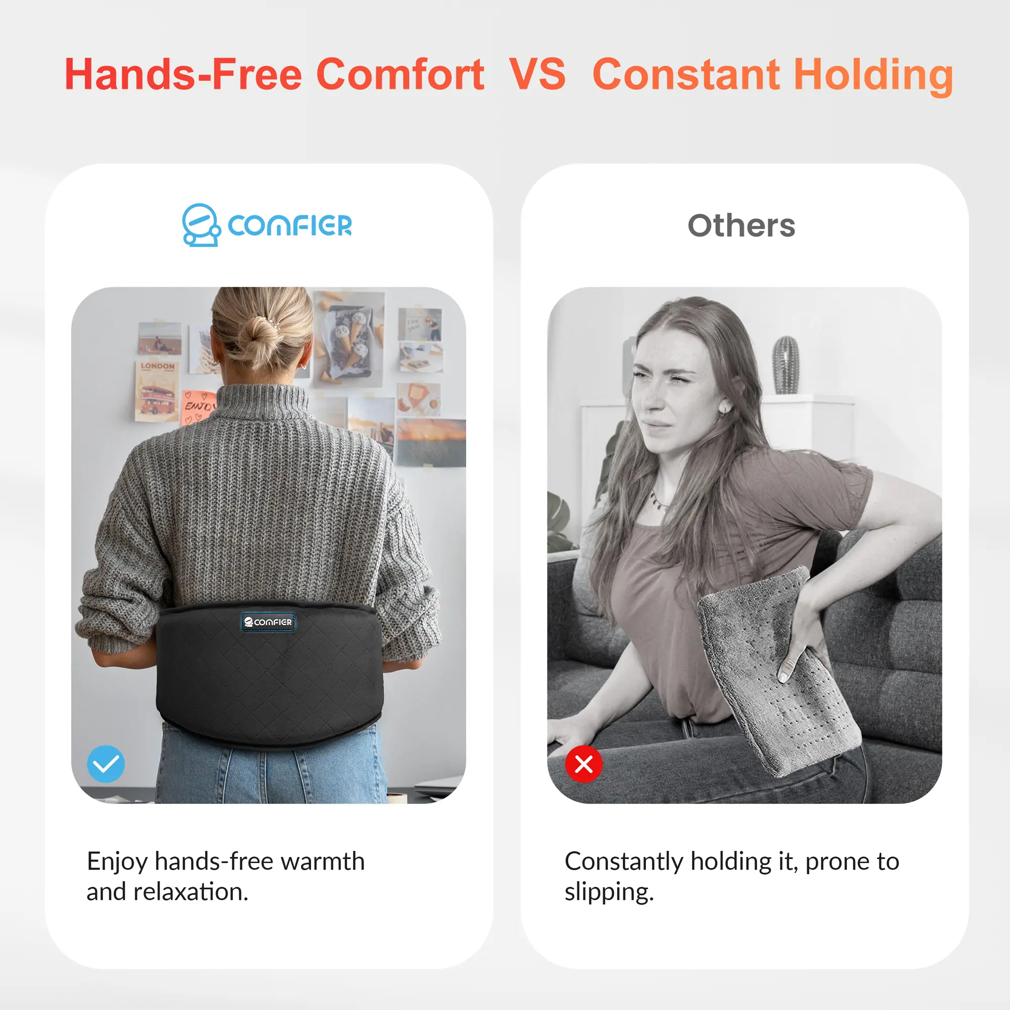 ·Customizable massage - This heating pad for back pain relief wrap has 3 massage modes, 2 adjustable intensity of vibration and 2 levels of heating. Allow you customize a setting for yourself to achieve the ultimate comfort. The heating pad is equipped with overheat protection and auto shut off features to ensure safe use.
