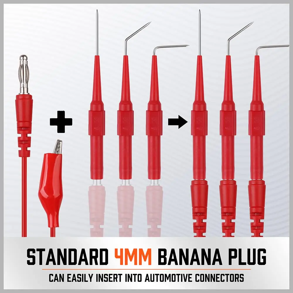 ·Back Probe can test up to 30 volts. easier use on automotive connectors.