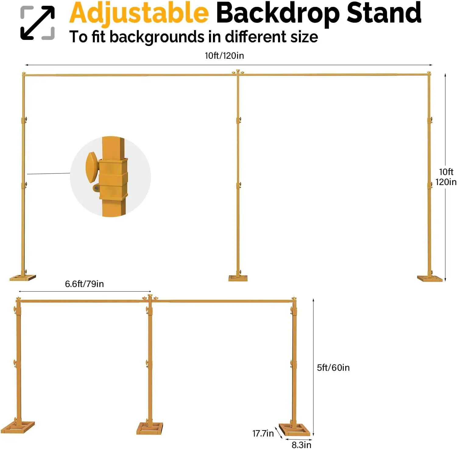 ·Customizable Support: The adjustable size allows for easy customization, ensuring the backdrop fits your needs.