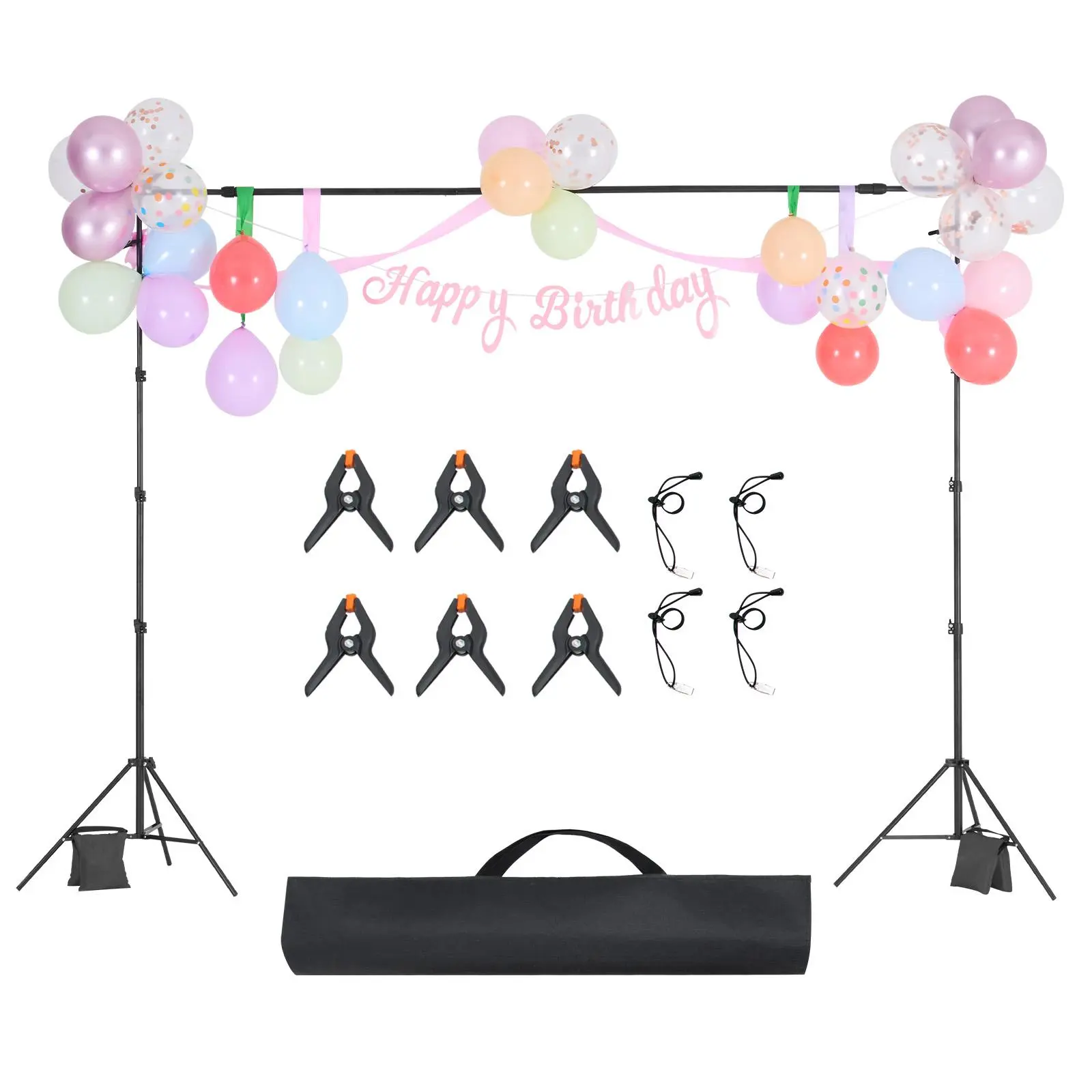 • Complete Accessory Set: This photo backdrop frame includes heavy-duty clips to hold backdrops flat and wrinkle-free and sandbags to add weight and stability, especially for outdoor setups.