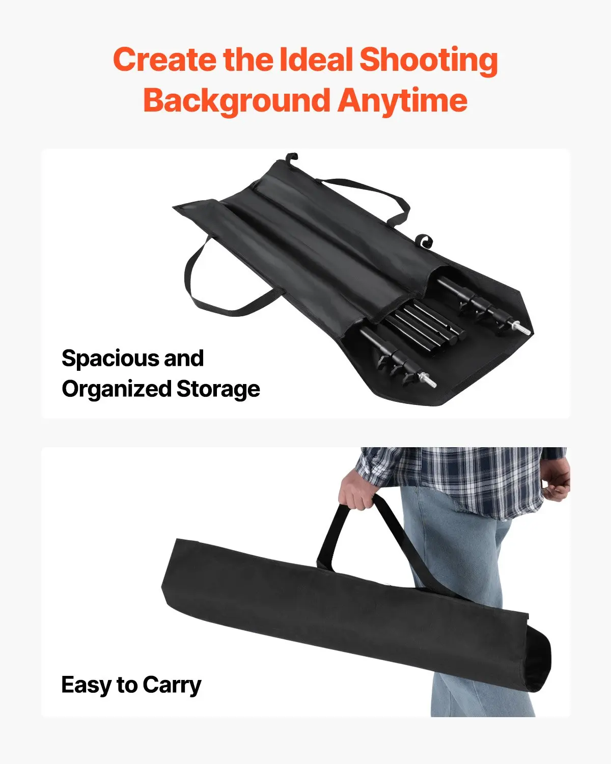·Easy Setup & Carry: This backdrop holder has spring-loaded pins at each crossbar joint for quick assembly and disassembly, with no tools required. The carrying bag makes it easy to store and transport to set up the ideal backdrop anywhere.