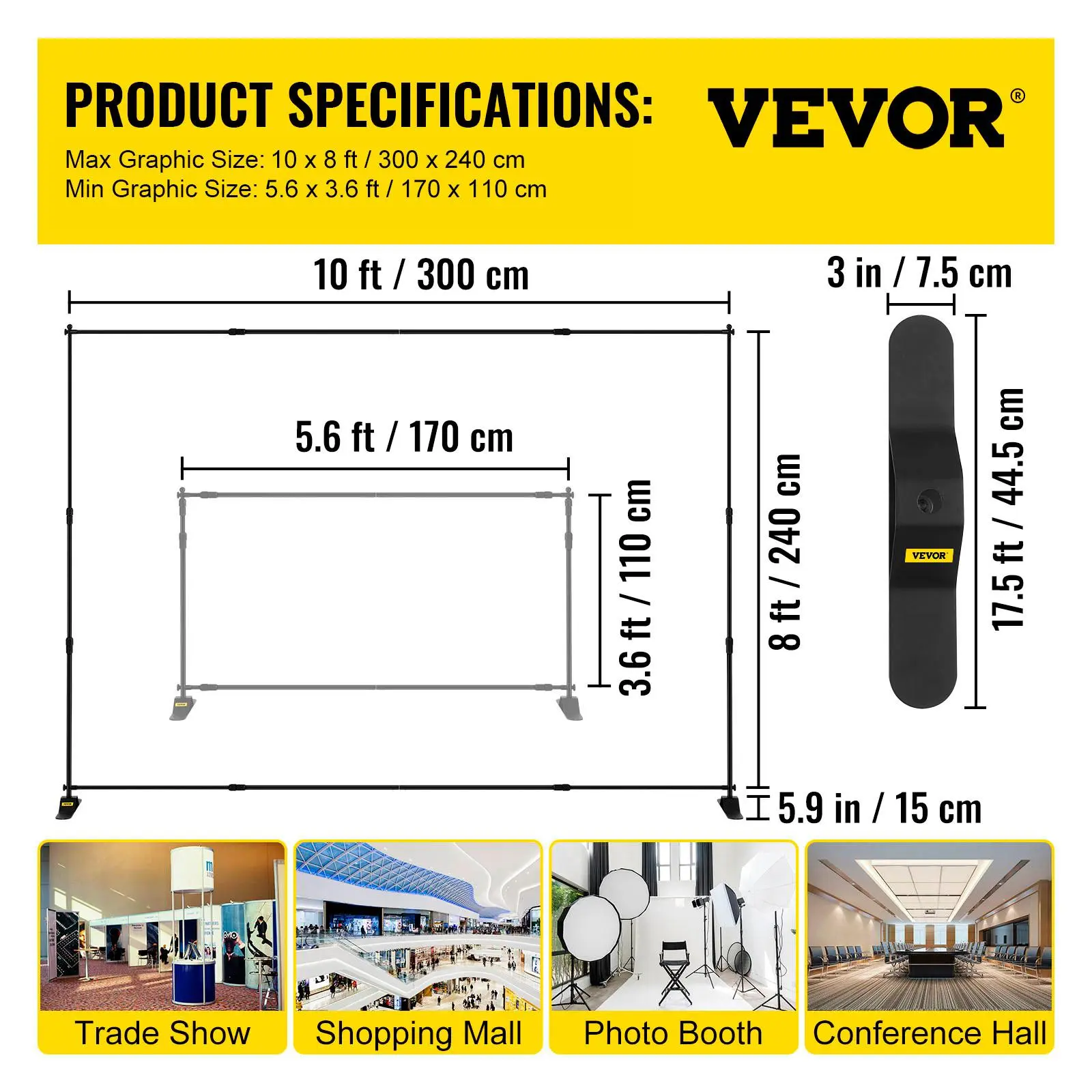 5. VEVOR 10 x 8 Ft Backdrop Banner Stand Adjustable Height and Width Newest Step and Repeat for Trade Show Wall Exhibitor Photo Booth Background Accessories Aluminum