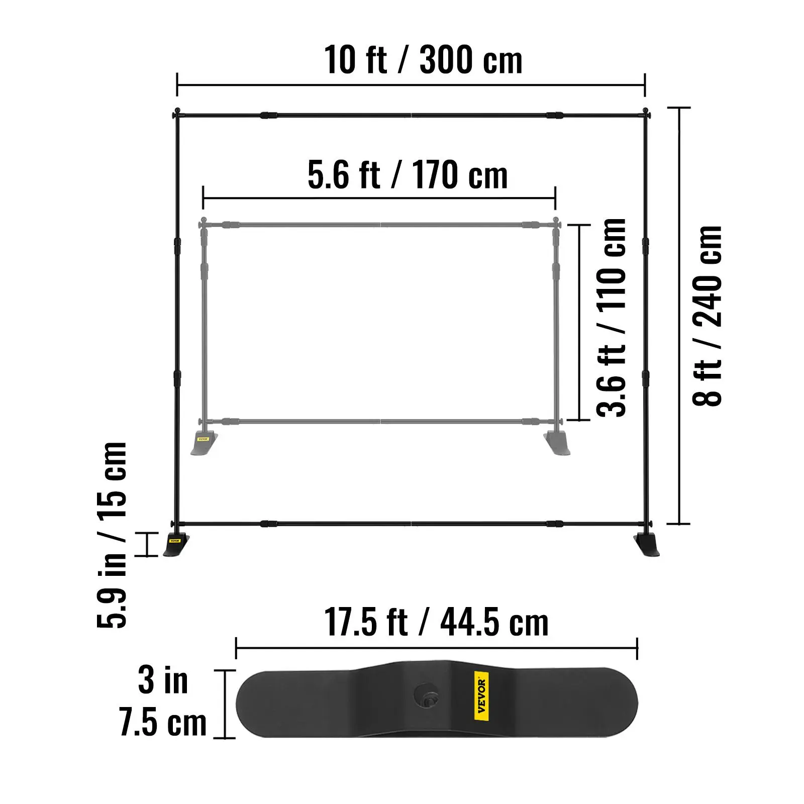 • Adjustable Display Size: The backdrop frame features a telescopic design with adjustable width of 5.6-10 ft/170-300 cm and an adjustable height of 3.6-8 ft/110-240 cm. All poles are easily retractable by loosening the joints, convenient to fit for banners or posters in different sizes.