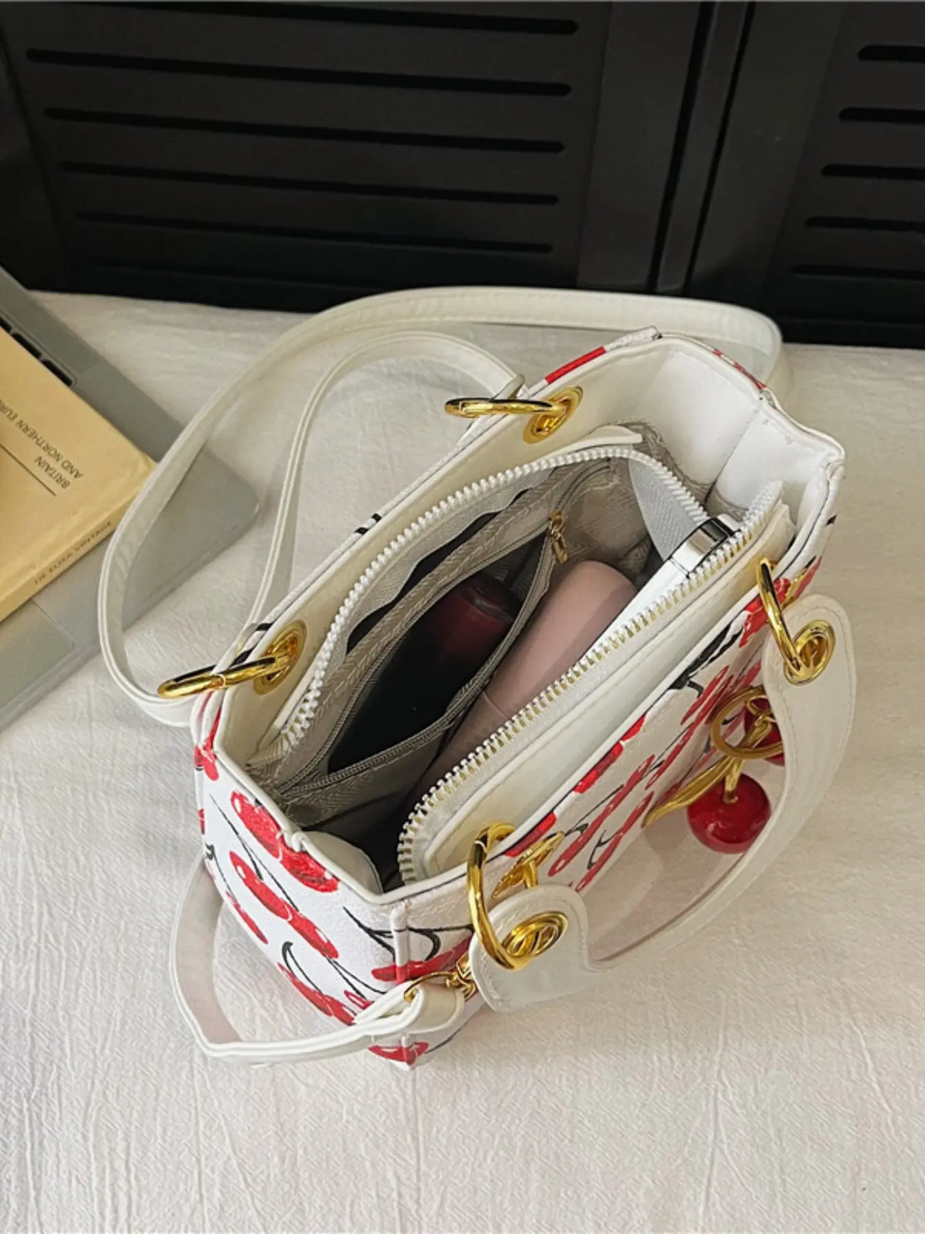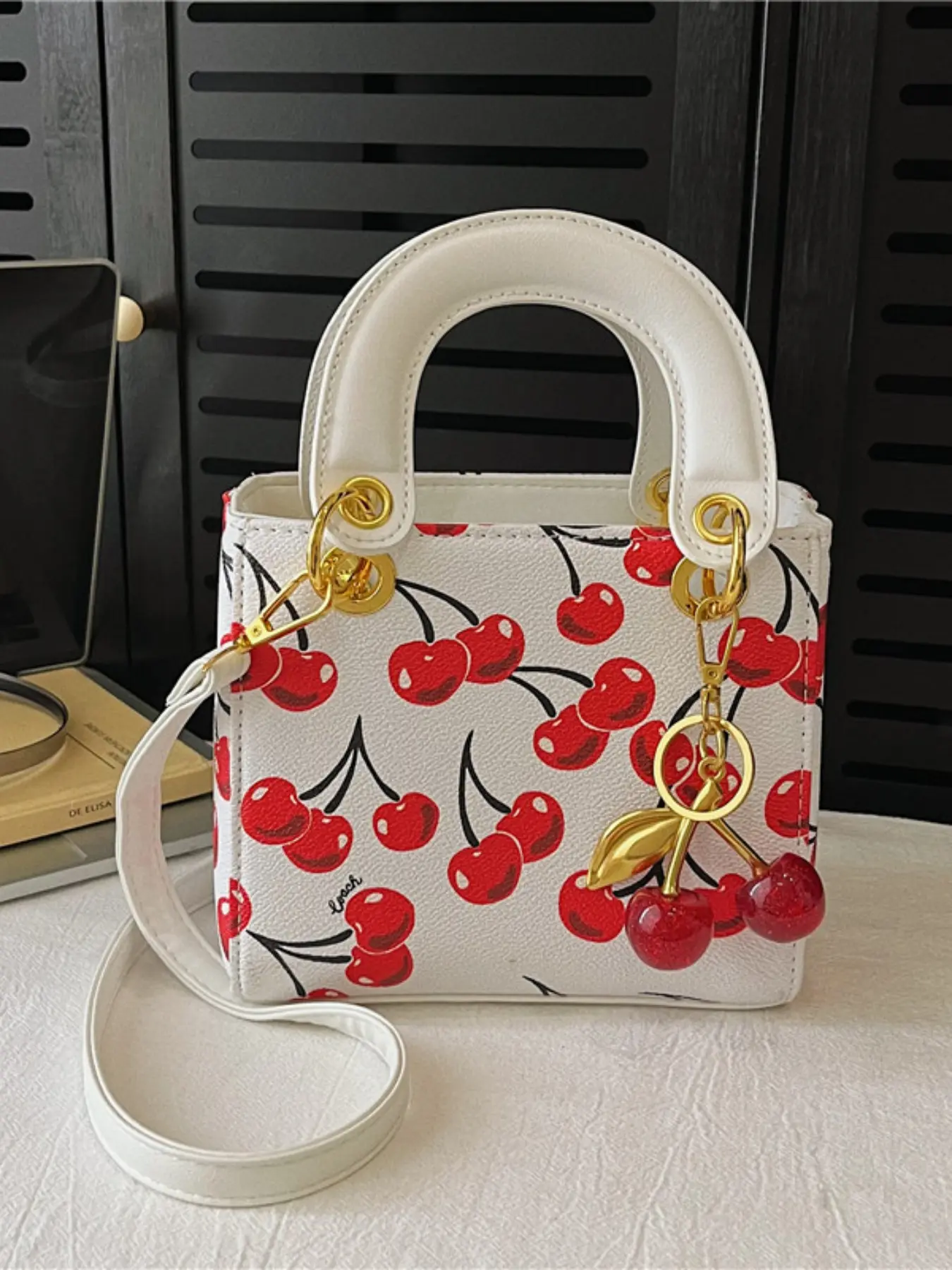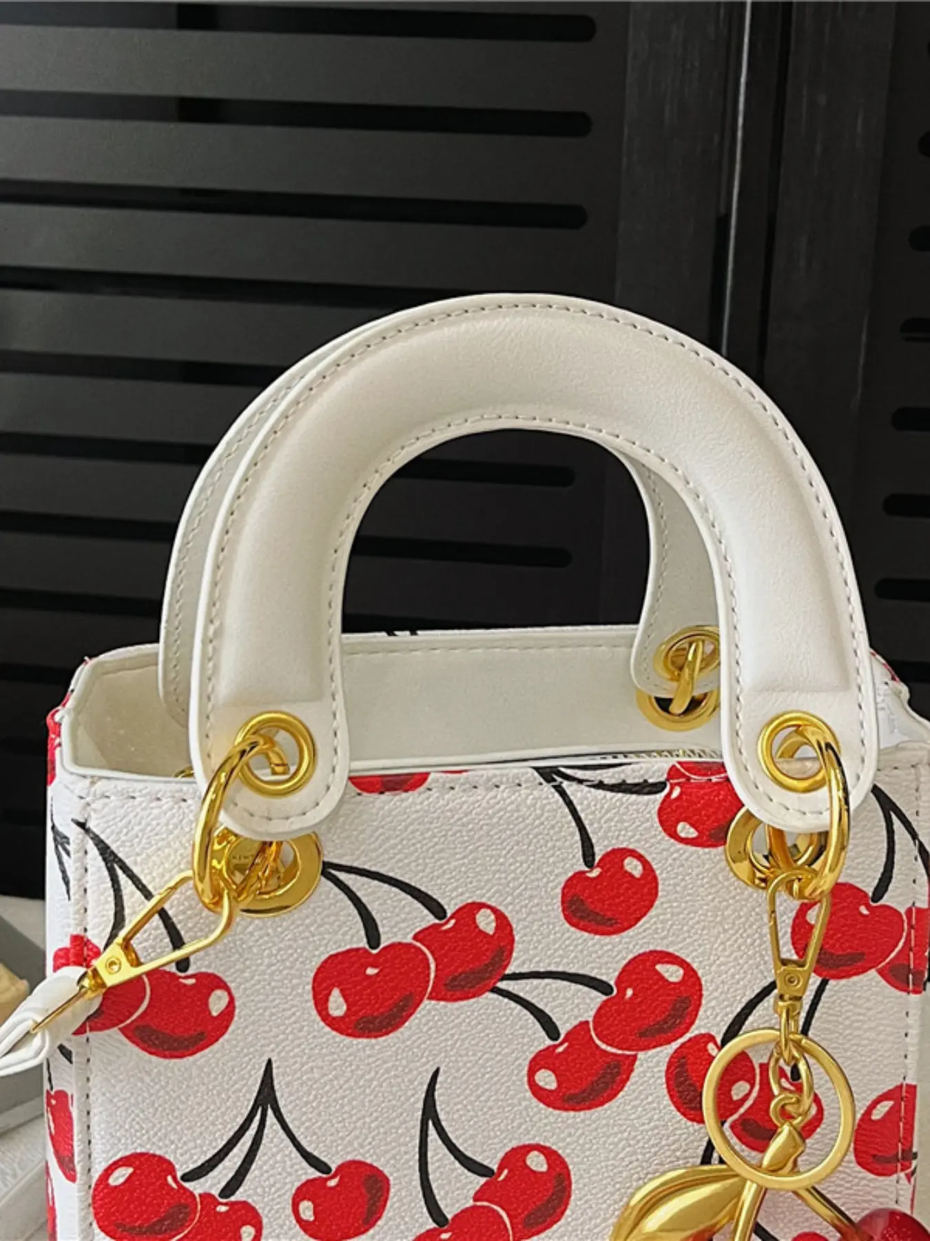 【Charming pattern】: Features a playful red cherry print against a white background, adding a fun and cheerful element to your accessory collection.