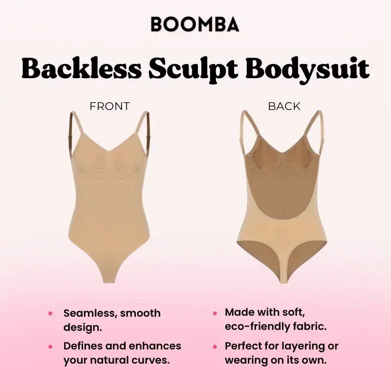 Boost your confidence with the BOOMBA Sculpt Backless Bodysuit! It’s like a secret superpower for your wardrobe—seamless shaping, targeted support, and a smooth, flawless silhouette. The open-back design stays invisible under backless outfits, while breathable fabric keeps you comfortable all day. Perfect for a boost of confidence, whether for special occasions or everyday wear!