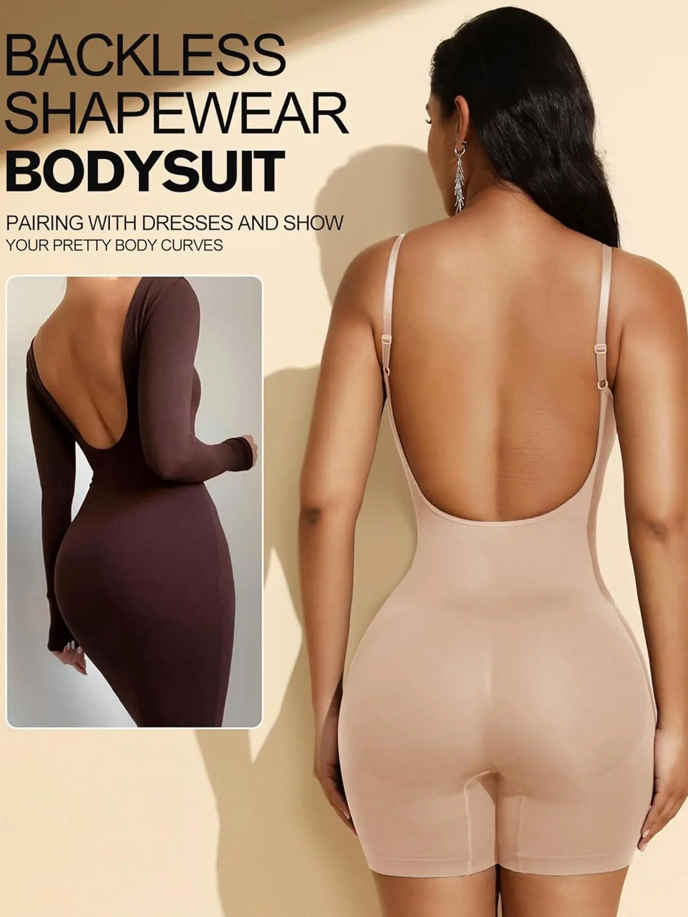Women's Solid Backless Adjustable Strap Shapewear Bodysuit, Tummy Control Butt Lifting Seamless Shaper, Women's Shapewear for All Seasons
