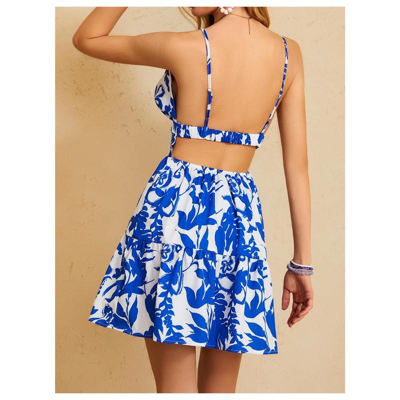 ·Features: Backless, cutout, ruffle hem, a line, mini length, summer cami dress for womenGood choice with casual sandals, a wide brimmed hat, and a wicker bag for a quintessential summer look
