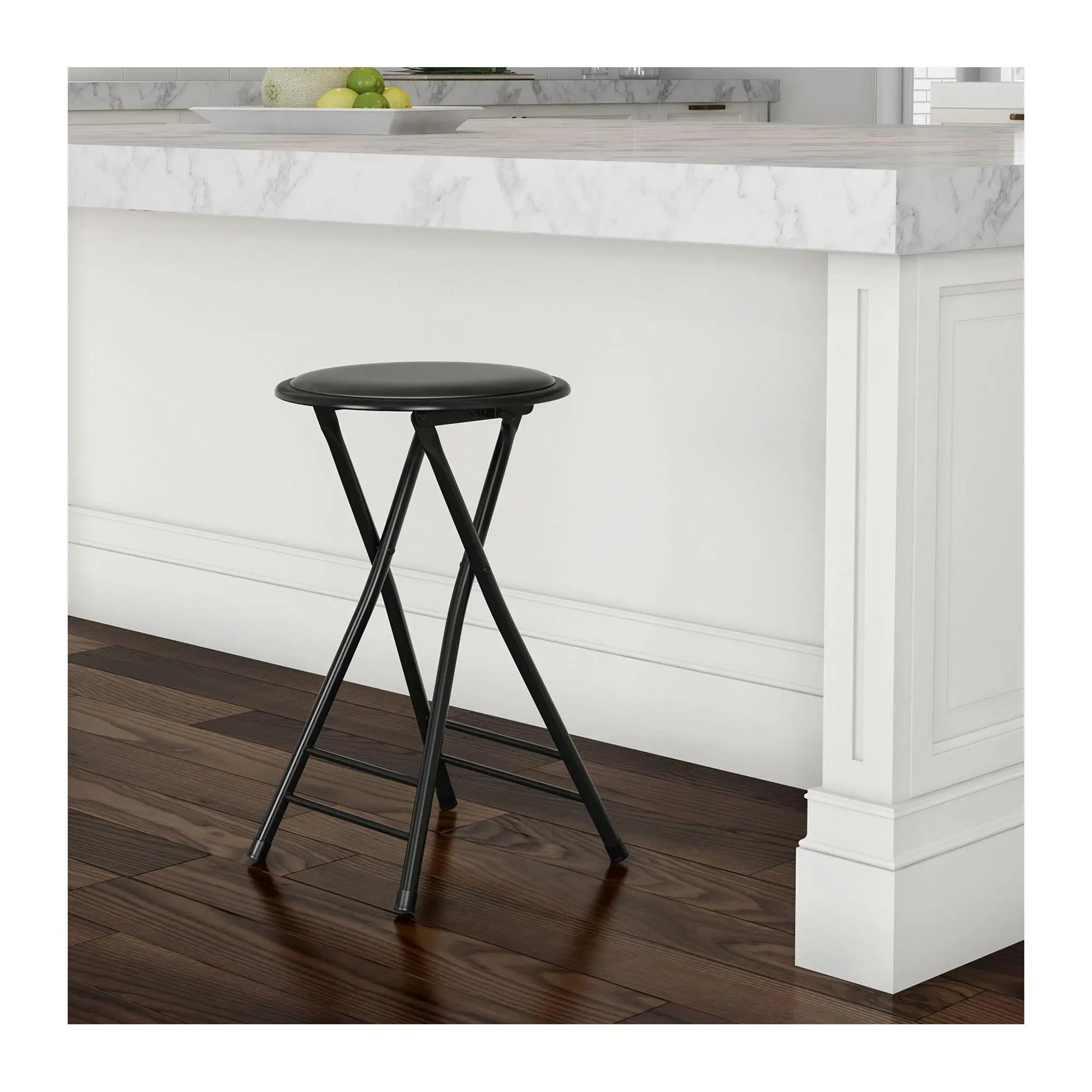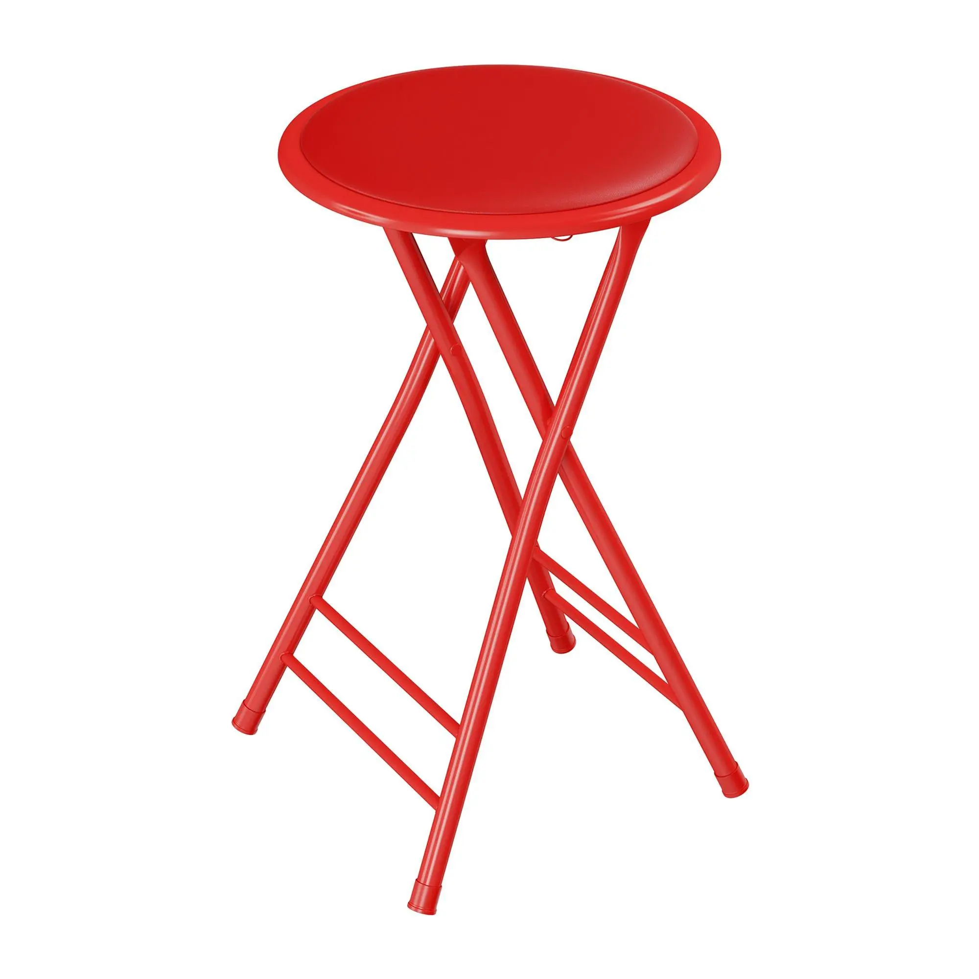 Simplify seating options with this padded stool that travels easily and unfolds in a flash. From Trademark Home.