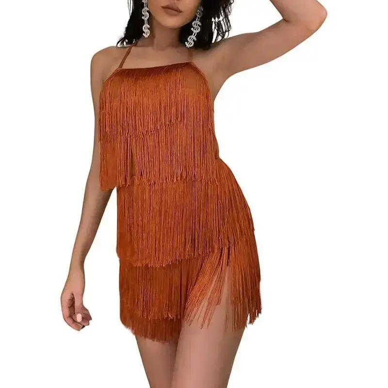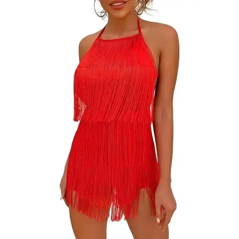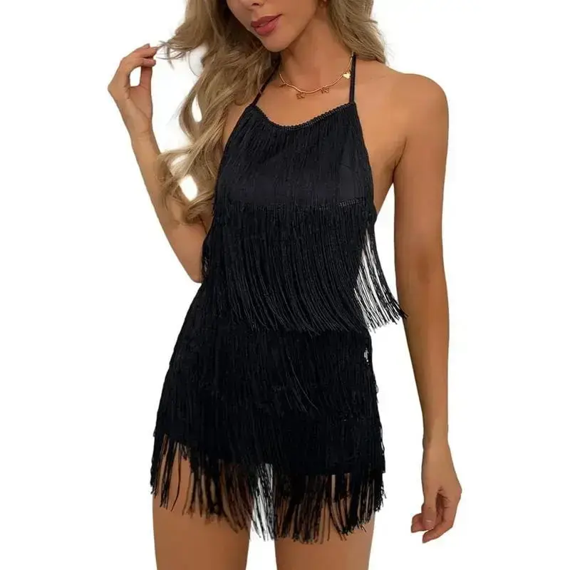 Backless Fringe Dress Jumpsuit - Western Country Concert Cowgirl Outfit for Women Nashville Tassel Romper Bohemian Womenswear Breathable