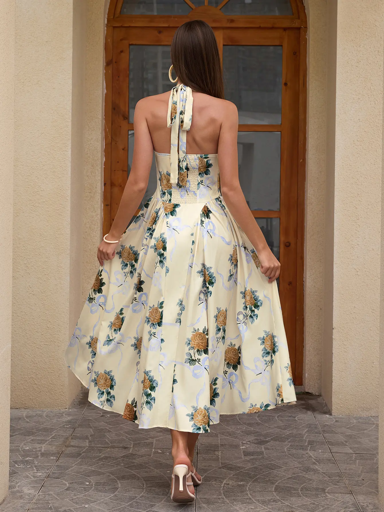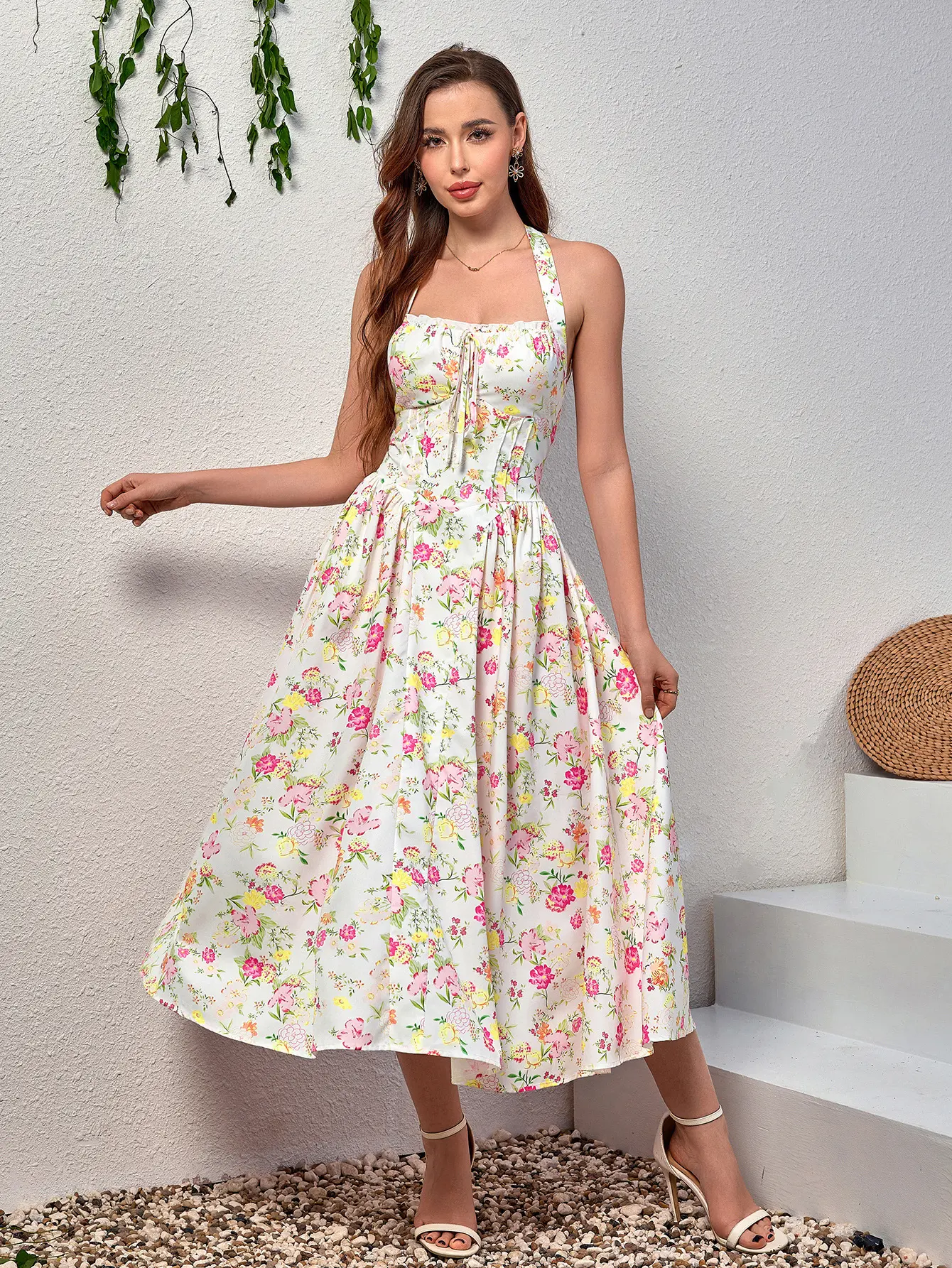 ·Halter Neck with Tie DetailsThe halter neckline, paired with a front tie, highlights the collarbones and adds a playful, feminine touch. Suitable for summer activities, it's cool and stylish.