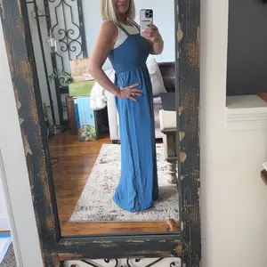 Obsessed!! Perfect size and length.. you can literally wear this for any occasion... I'm 5'6 and it touches the ground a but but with wedges it wouldnt.. I'd love to see one of these as halter top.. ohh and this size us XL and I'm 170 lbs