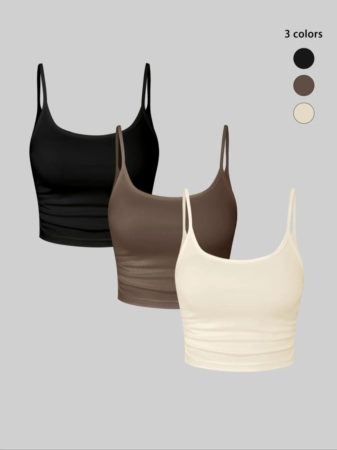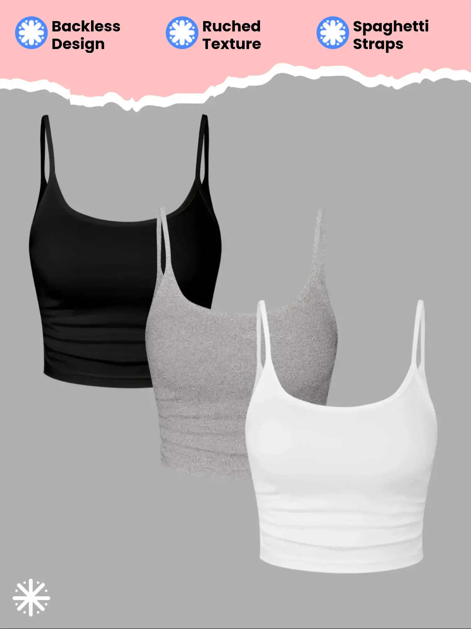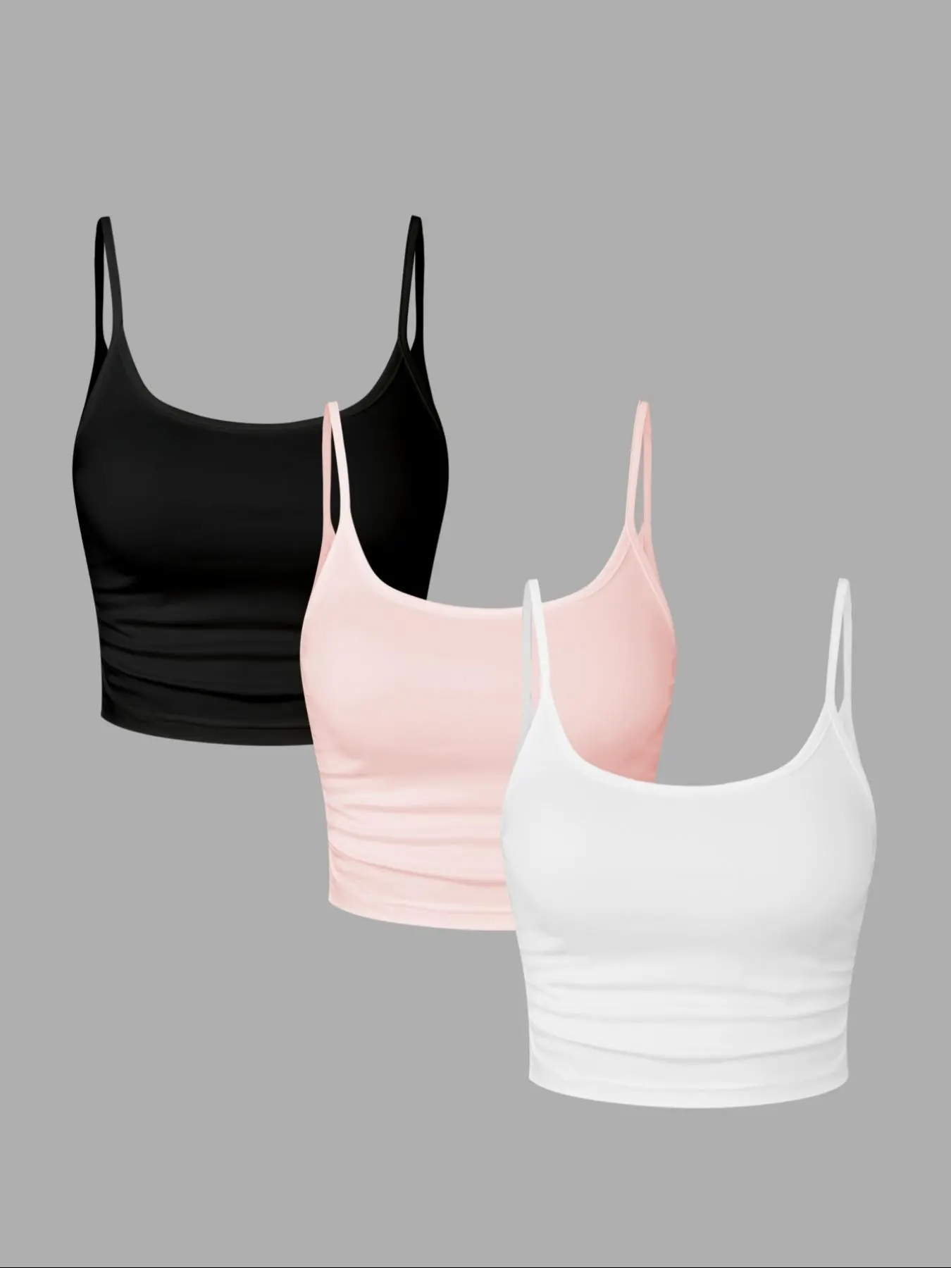 ăRuched Detailă: The ruched effect adds texture and visual interest to the crop cami top, enhancing your silhouette for a flattering appearance.