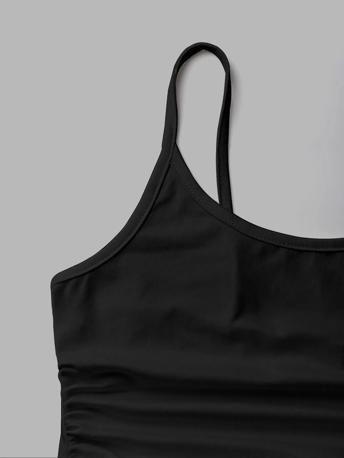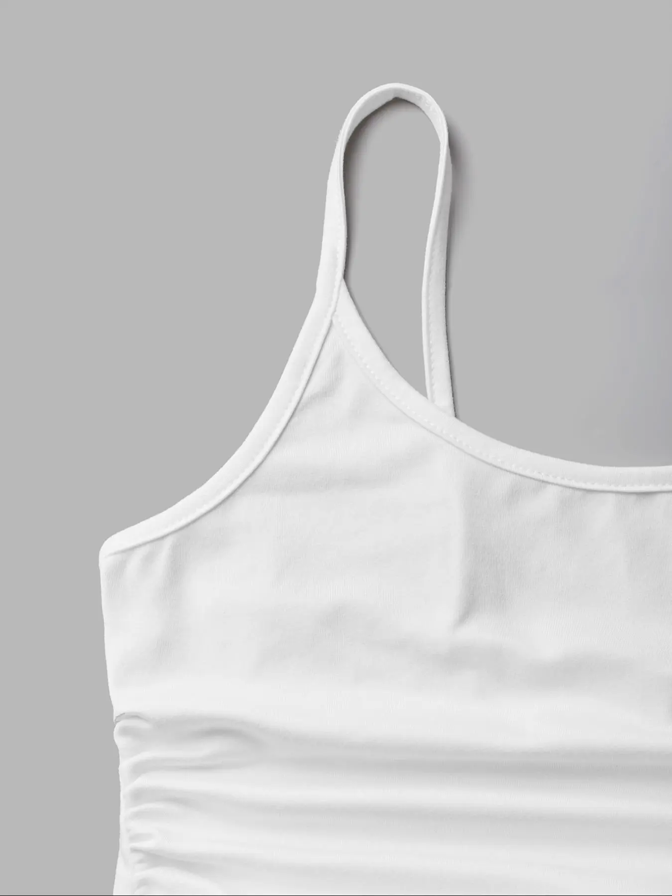 Women's Minimalist Solid Backless Ruched Crop Cami Top Casual Sleeveless Spaghetti Strap Top for Daily Wear, Ladies Clothes for All Seasons, Adjustable Cami Straps, Cute Tops, Elegant Sleeveless Cami