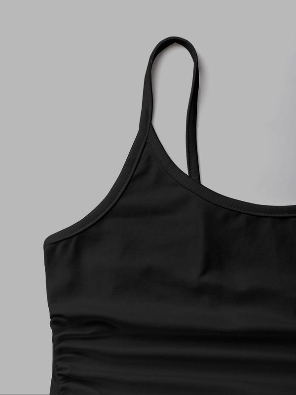 Women's Minimalist Solid Backless Ruched Crop Cami Top Casual Sleeveless Spaghetti Strap Top for Daily Wear, Ladies Clothes for All Seasons, Adjustable Cami Straps, Cute Tops