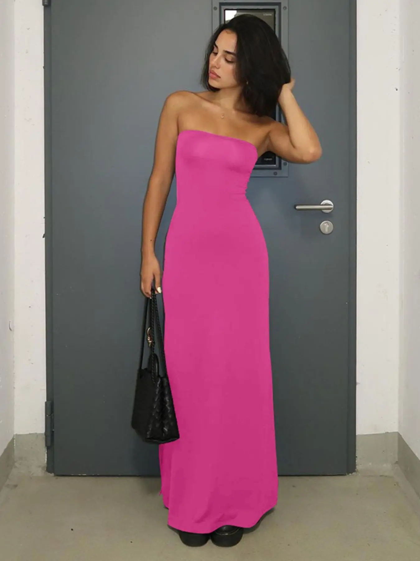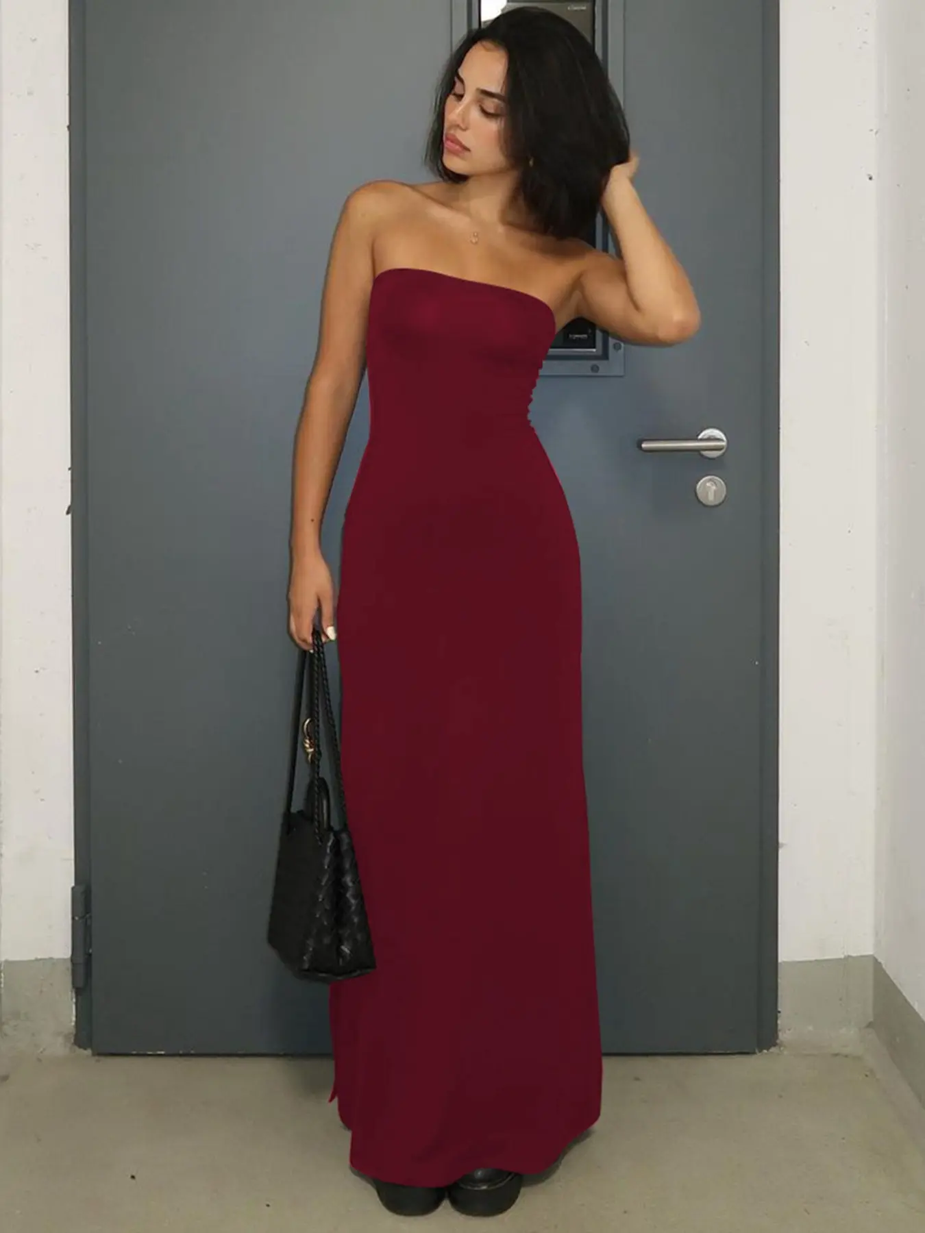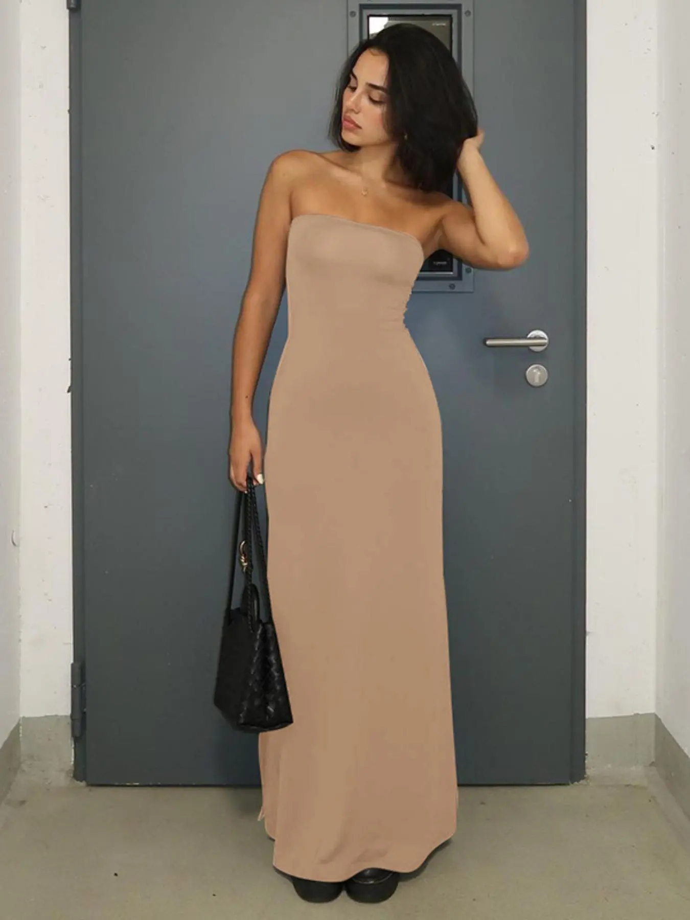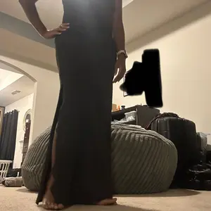 This dress is AMAZING!! It is black and long. I am almost 5’11” and this dress goes to the floor. It is classy, elegant and can be dressed up or down. Definitely worth the price. I’m so impressed.