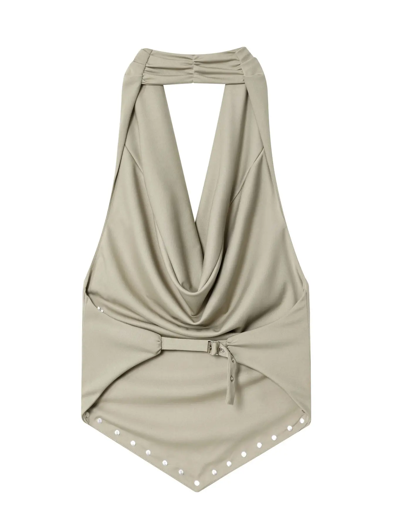 Backless Top with Adjustable Buckle Closure, Soft Flowy Fabric, Round Neck Design, Casual Daily Wear, Holiday