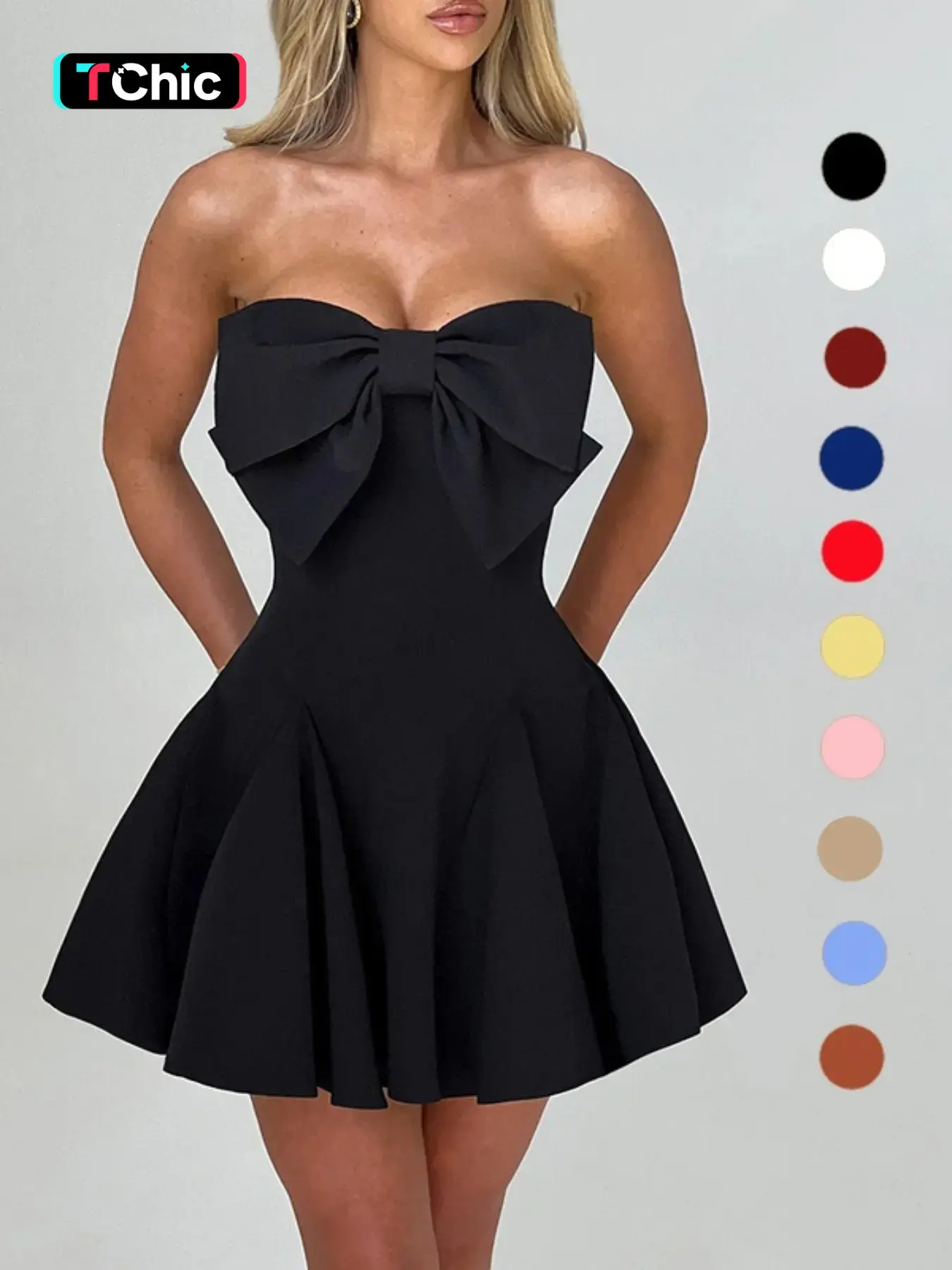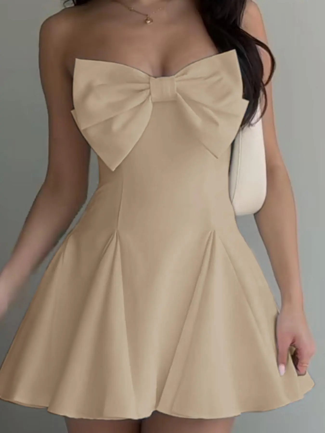 This dress runs true to size and has some stretch. We bought it for the dance after my daughter’s wedding and the dress was super cute. We did have to tack the bow back. We would definitely purchase the stress again. It was worth the money.