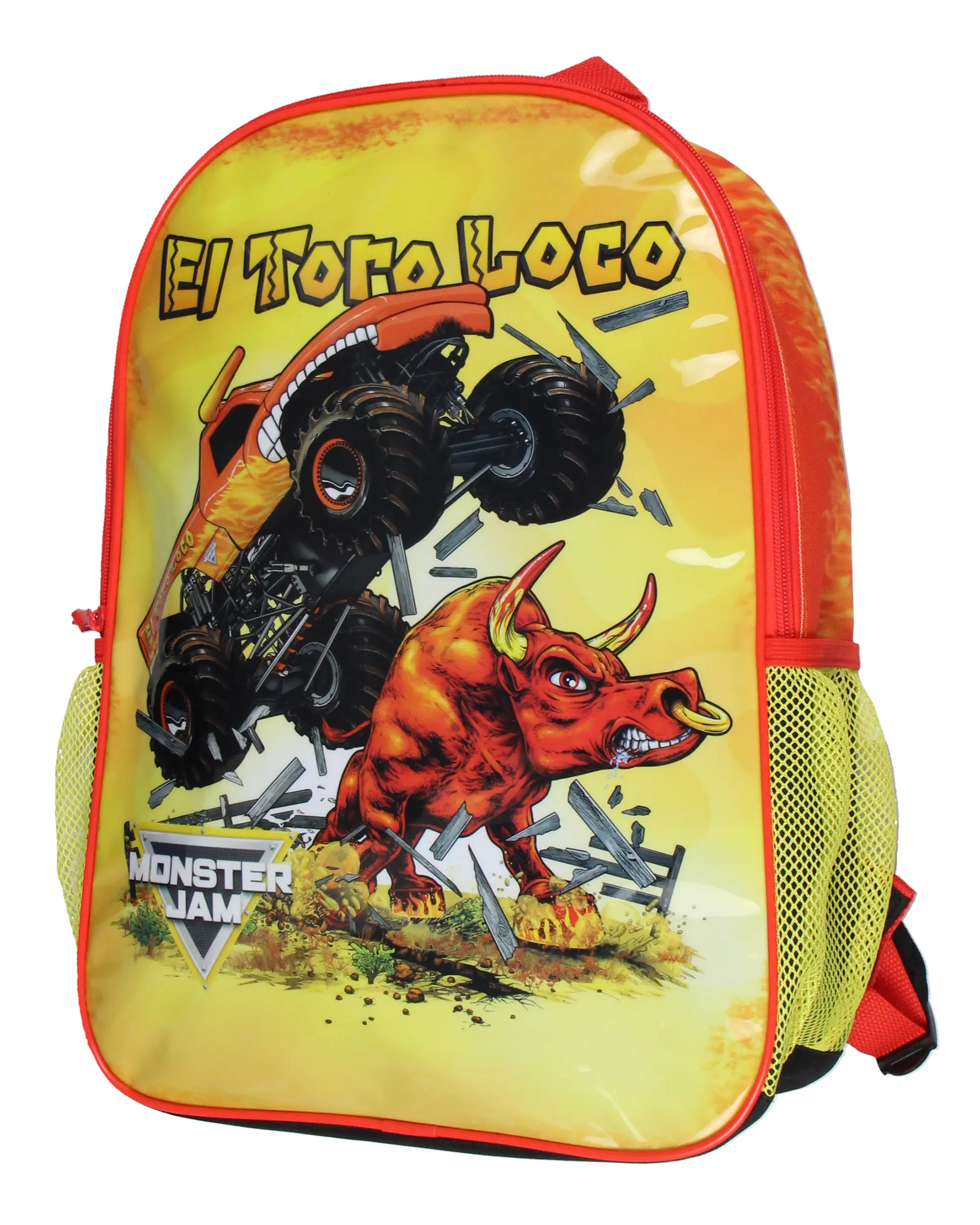 Monster Jam El Toro Loco Kids School Backpack Mess With The Bull & You Get The Horns! Big Truck Book Bag 17"