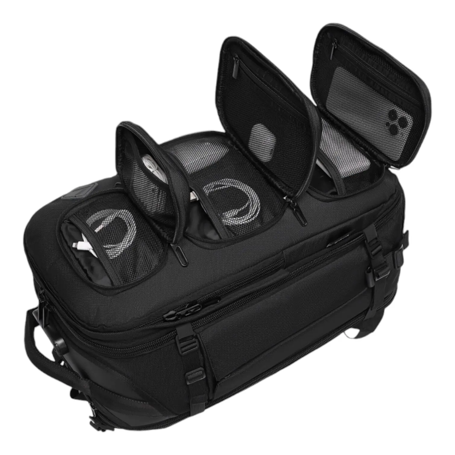 ·Internal and external organization with multiple zip compartments and pockets
