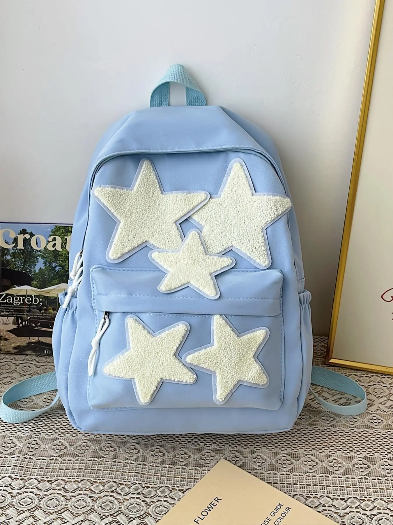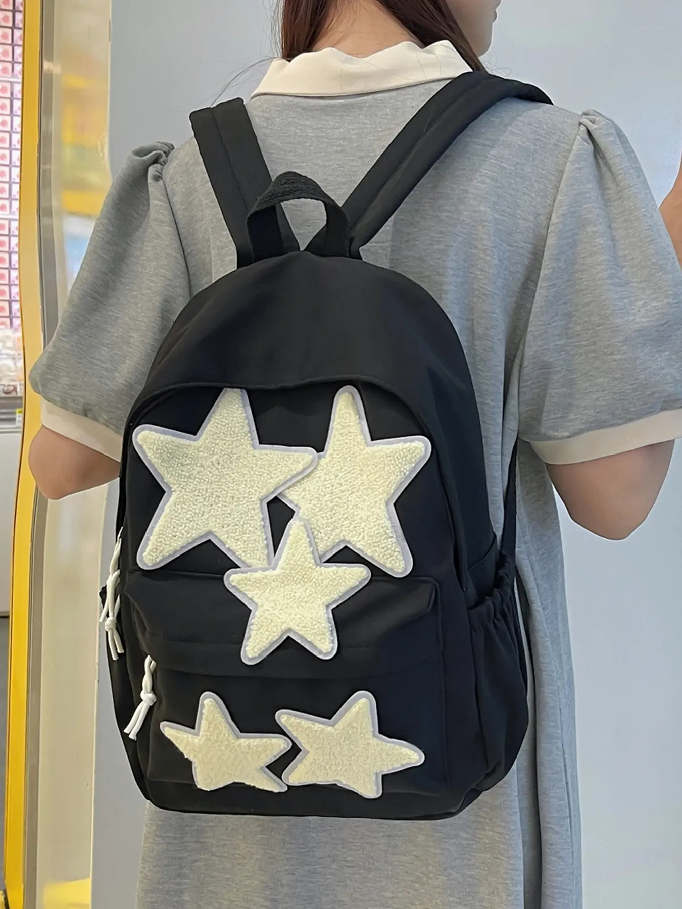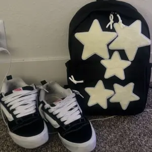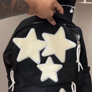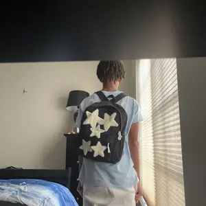 Material: I like the star fabric just they’re stitched on sorta weird and it got dirty real quickly and the back zipper keeps zipping down lol?