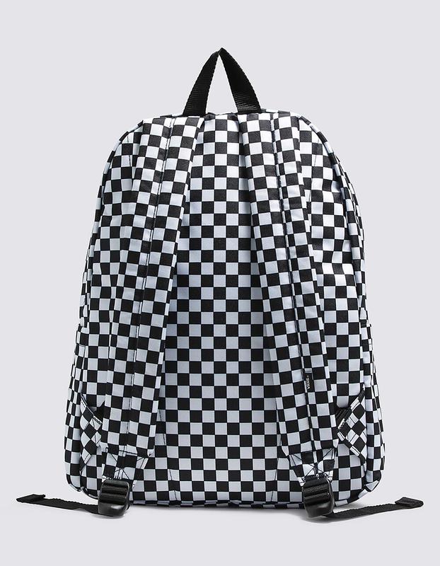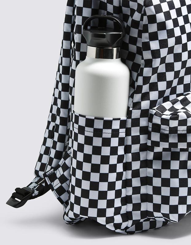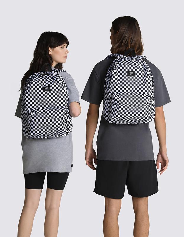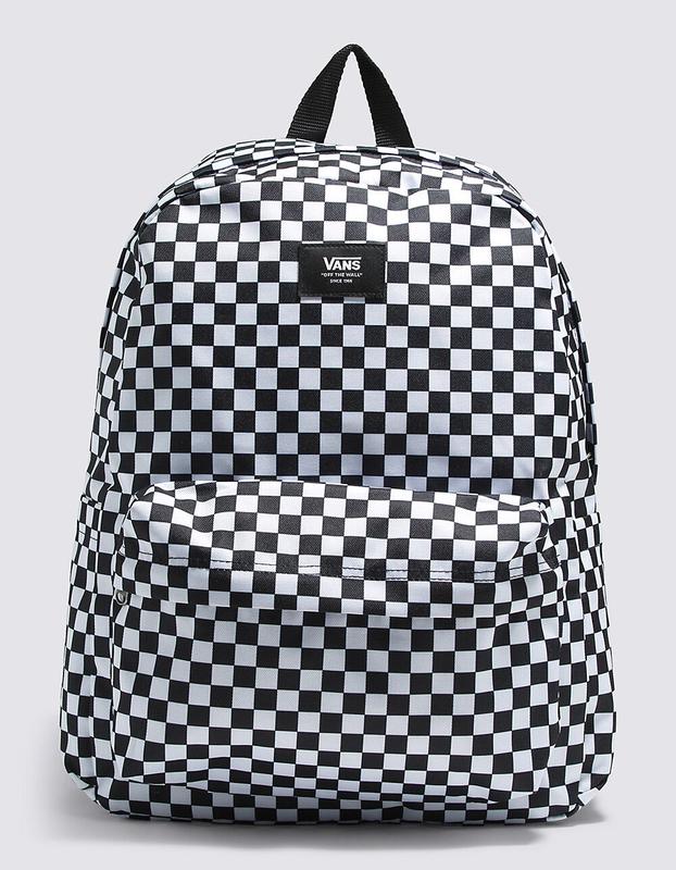 Vans Old Skool H2O Check Backpack. The Old Skool H2O Backpack is a 100% cotton backpack featuring one large main compartment and a front zip pocket with an organizer for quick access. Measuring 16.5 L x 12.75 W x 4.75 D inches, it has a 22-liter capacity. 100% Cotton. Imported.