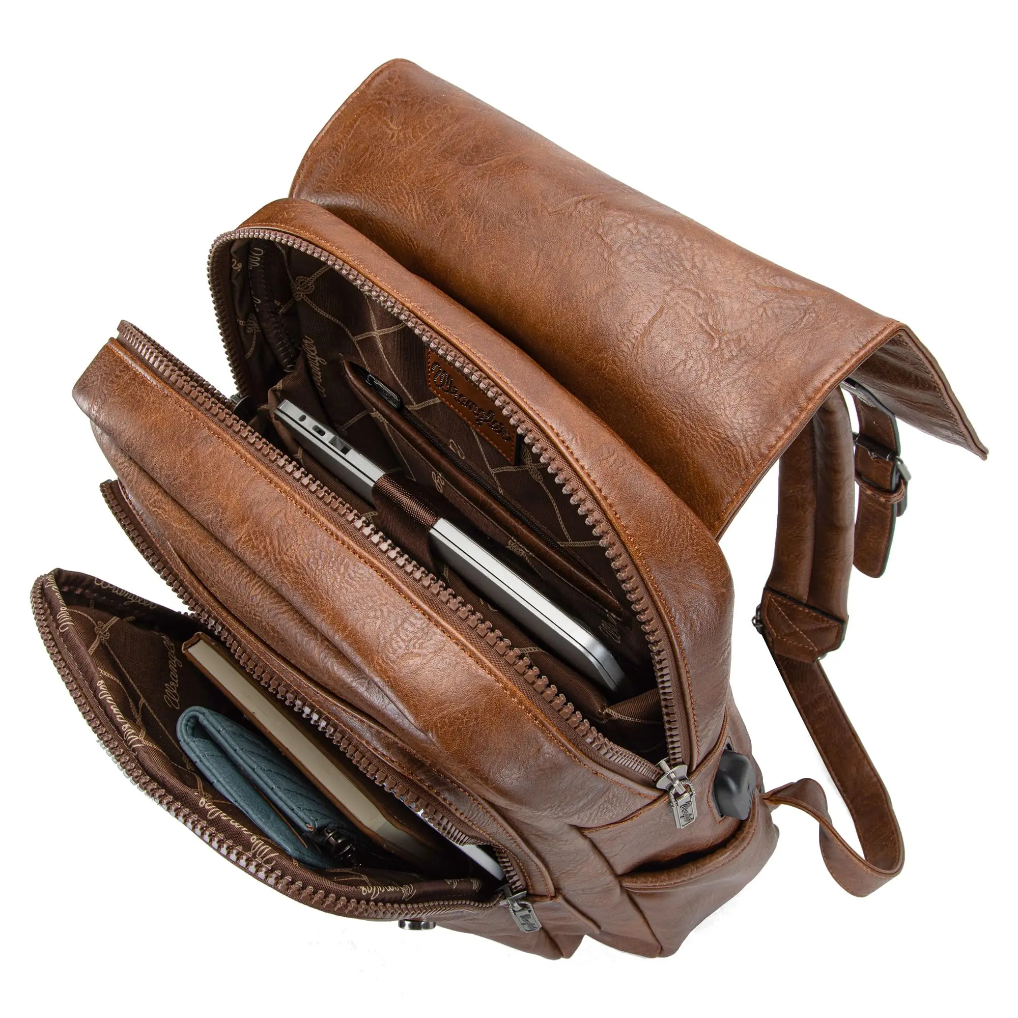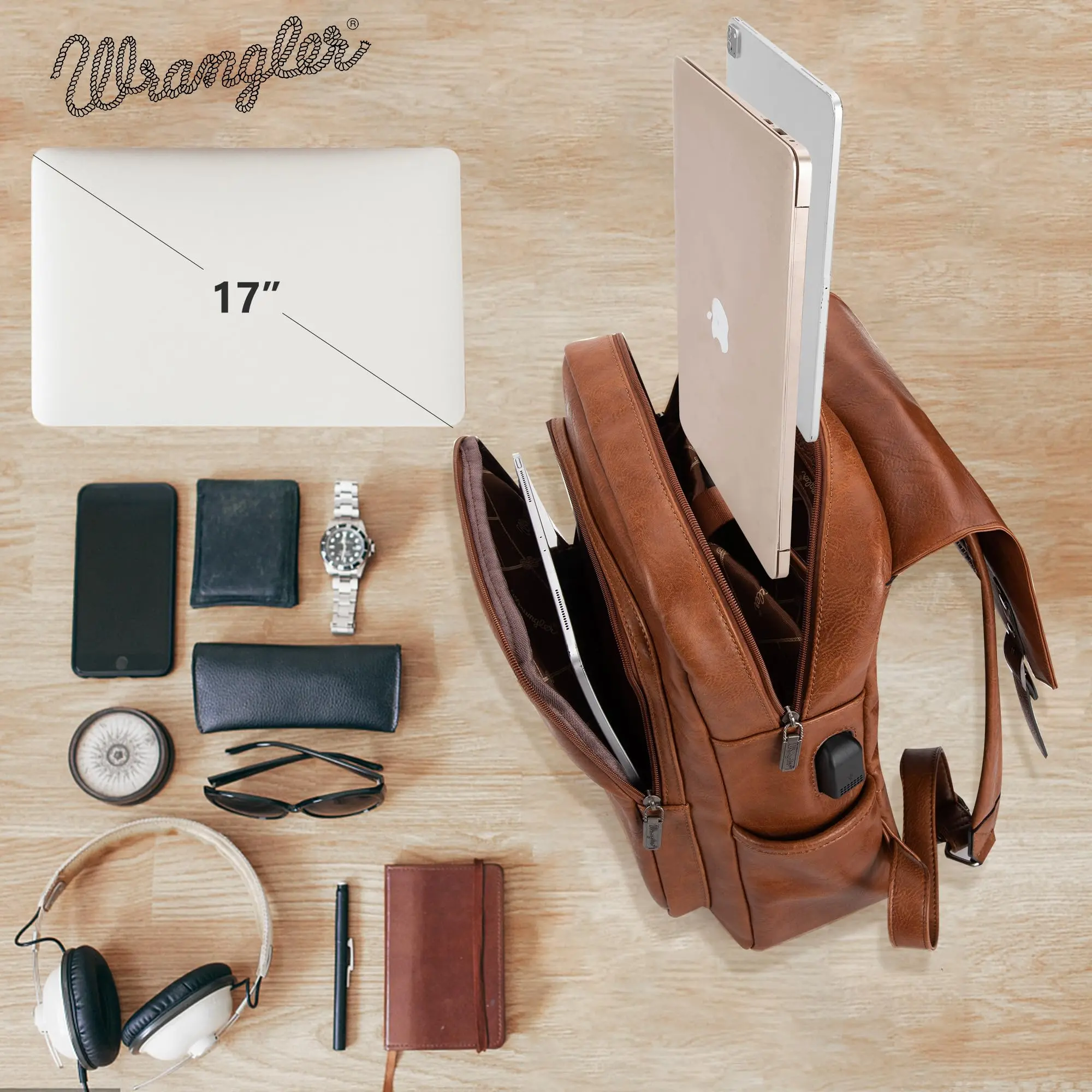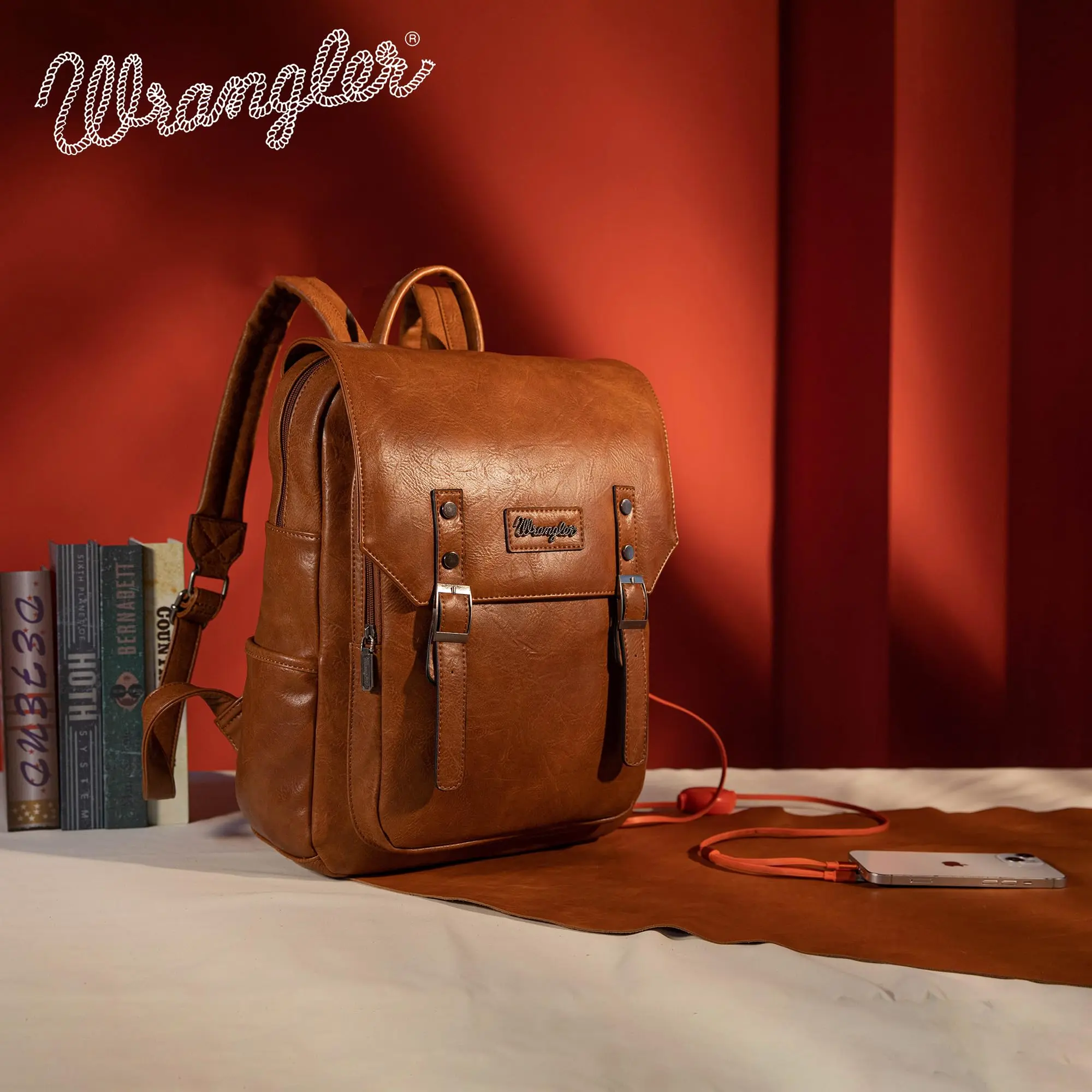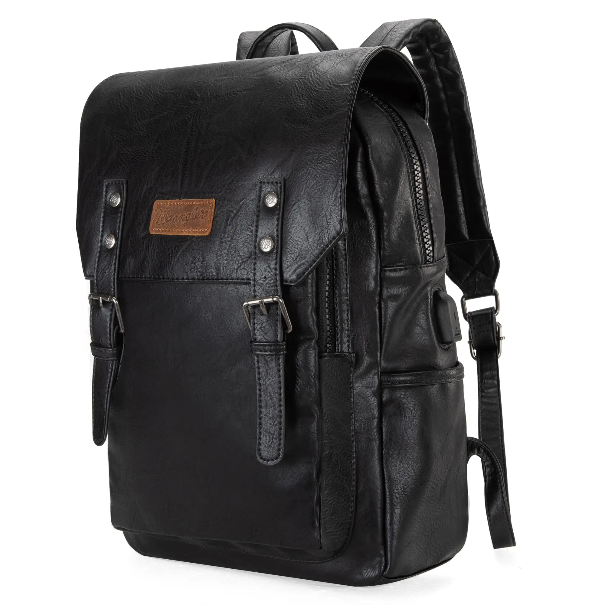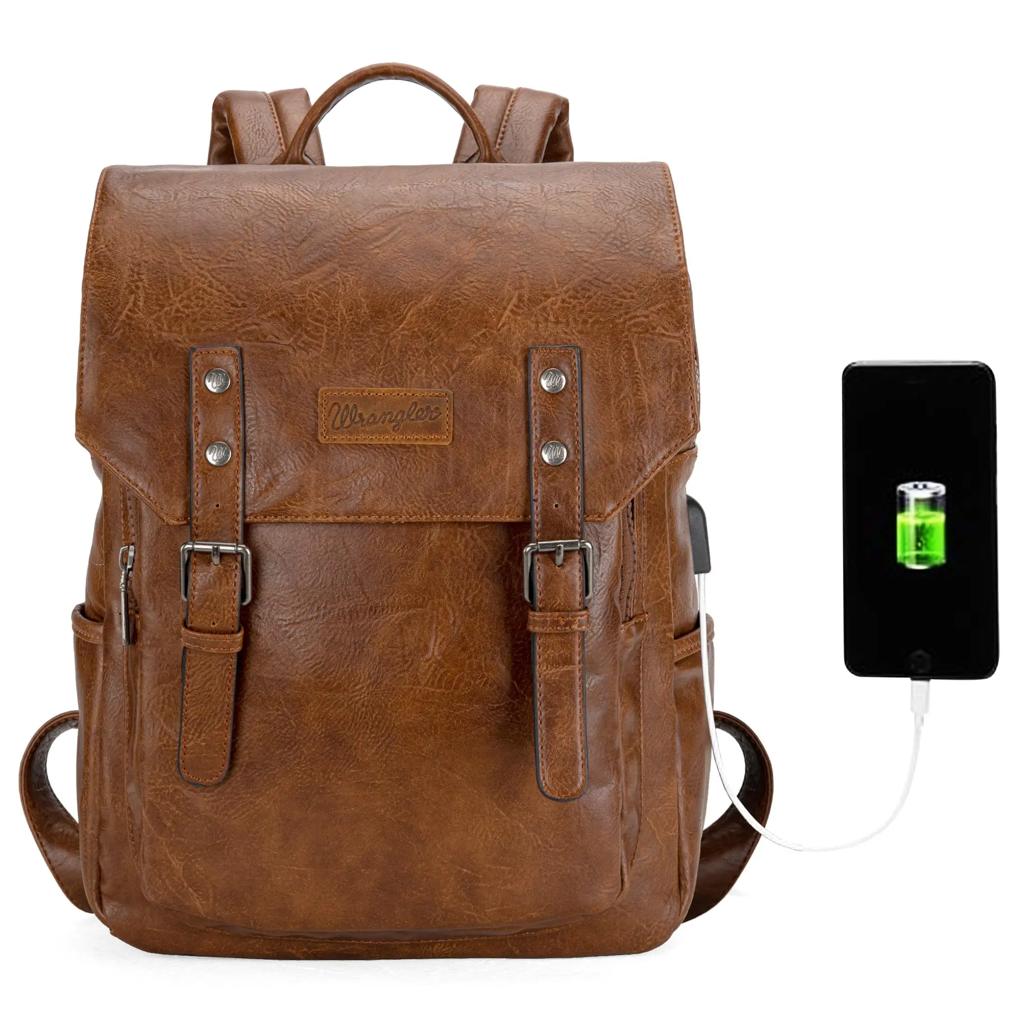 Wrangler PU leather backpack has a classic design with a combination of vegan leather and strong stitching, makes the whole backpack more attractive.