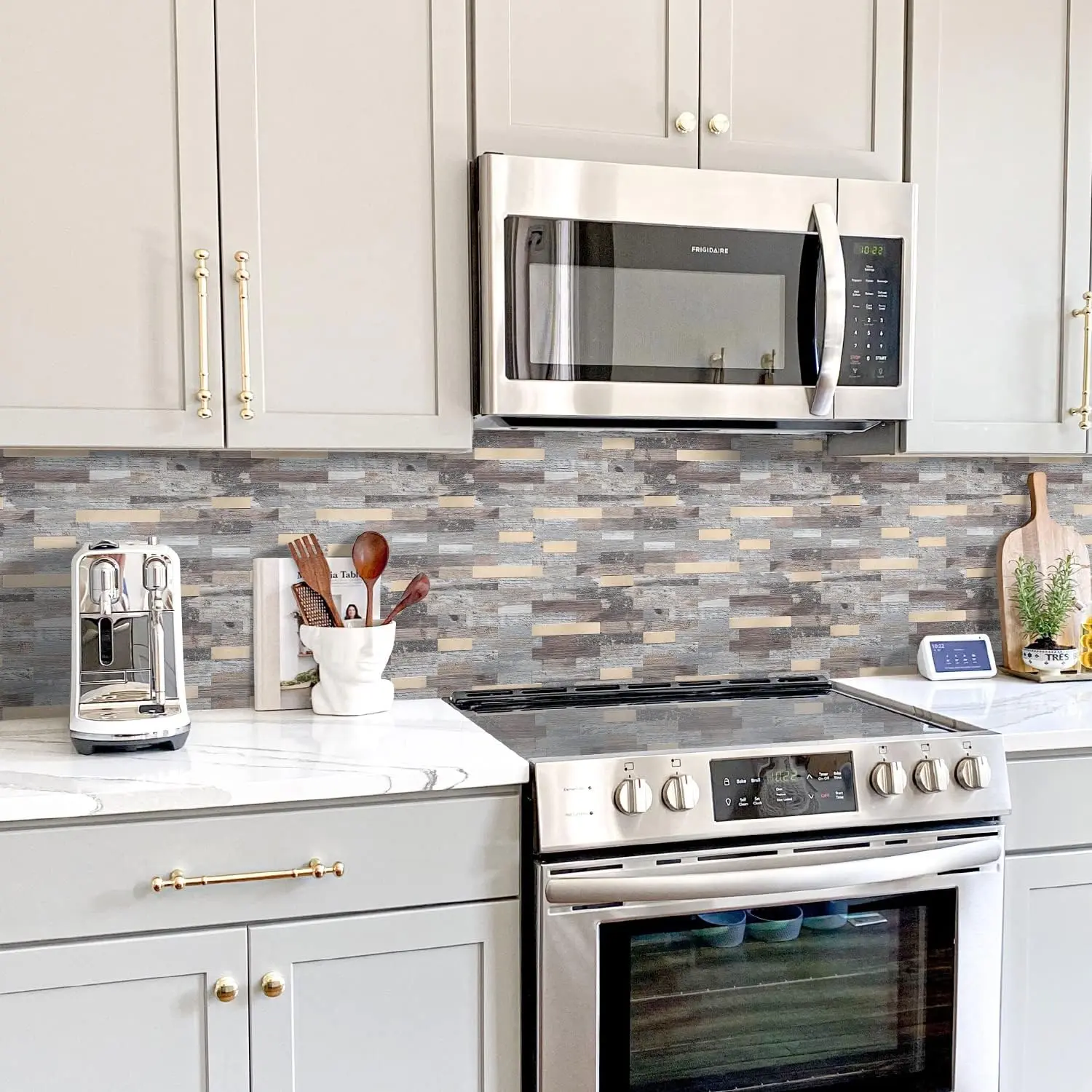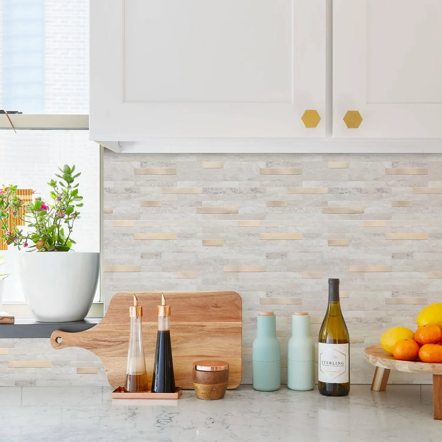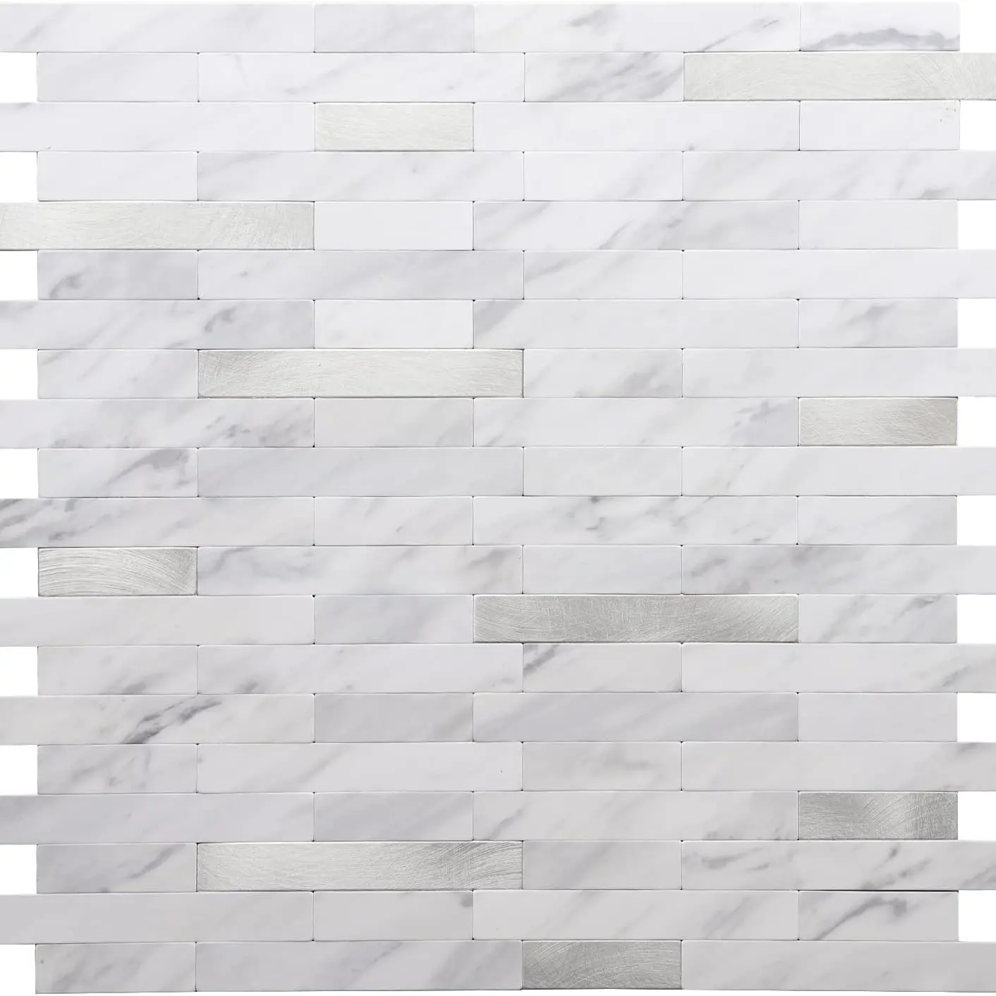 The combination of marble texture and metal elements is full of creativity, modernity and luxury. The good choice for remodeling your house. The high-quality kitchen backsplash is made of PVC composite laminate, the color is not fading, scratch-resistant, easy to maintain, and more durable than other ordinary vinyl backsplash tiles.