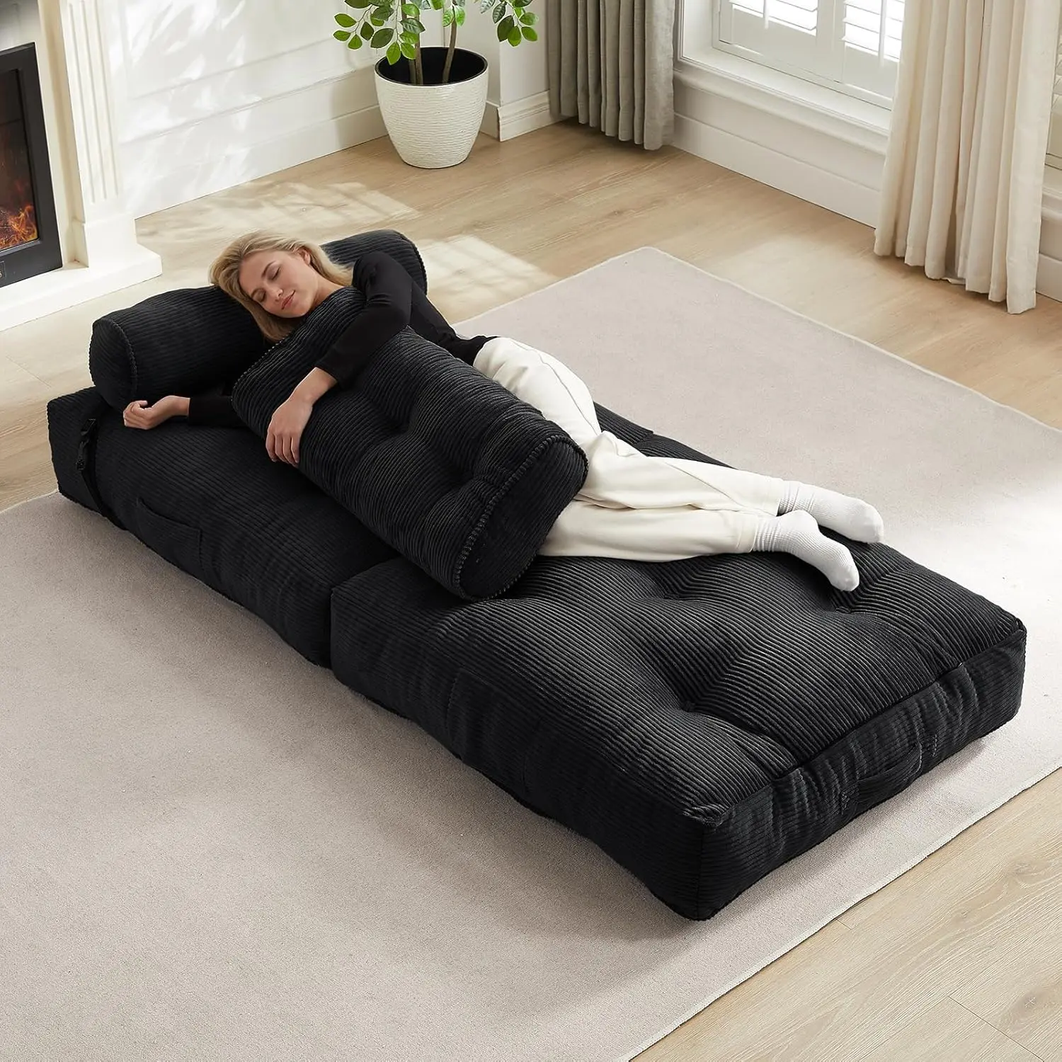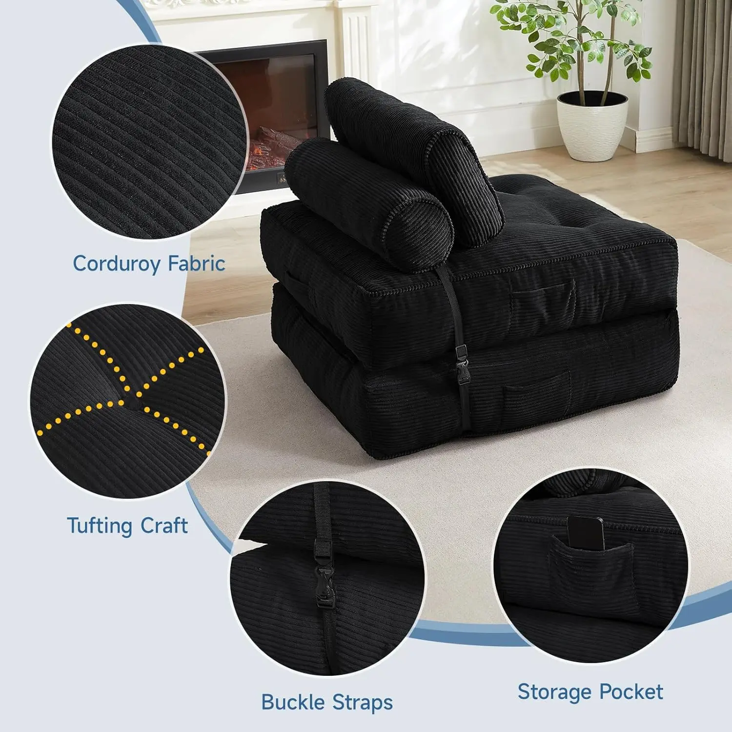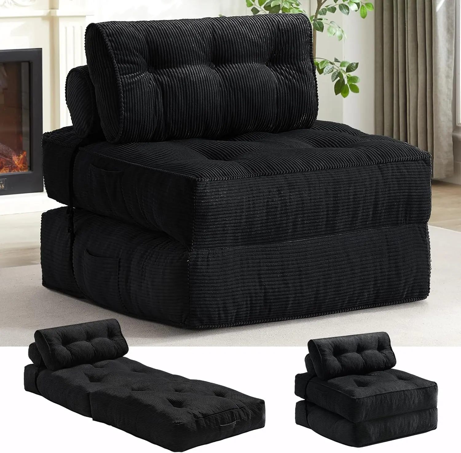 ·4-IN-1FOLDING DESIGN: Experience unparalleled convenience with this foldable sofa bed that easily converts into a cushion, sofa, lounge chair, or bed. It is ideal for accommodating guests or enjoying leisure activities such as reading and watching movies.