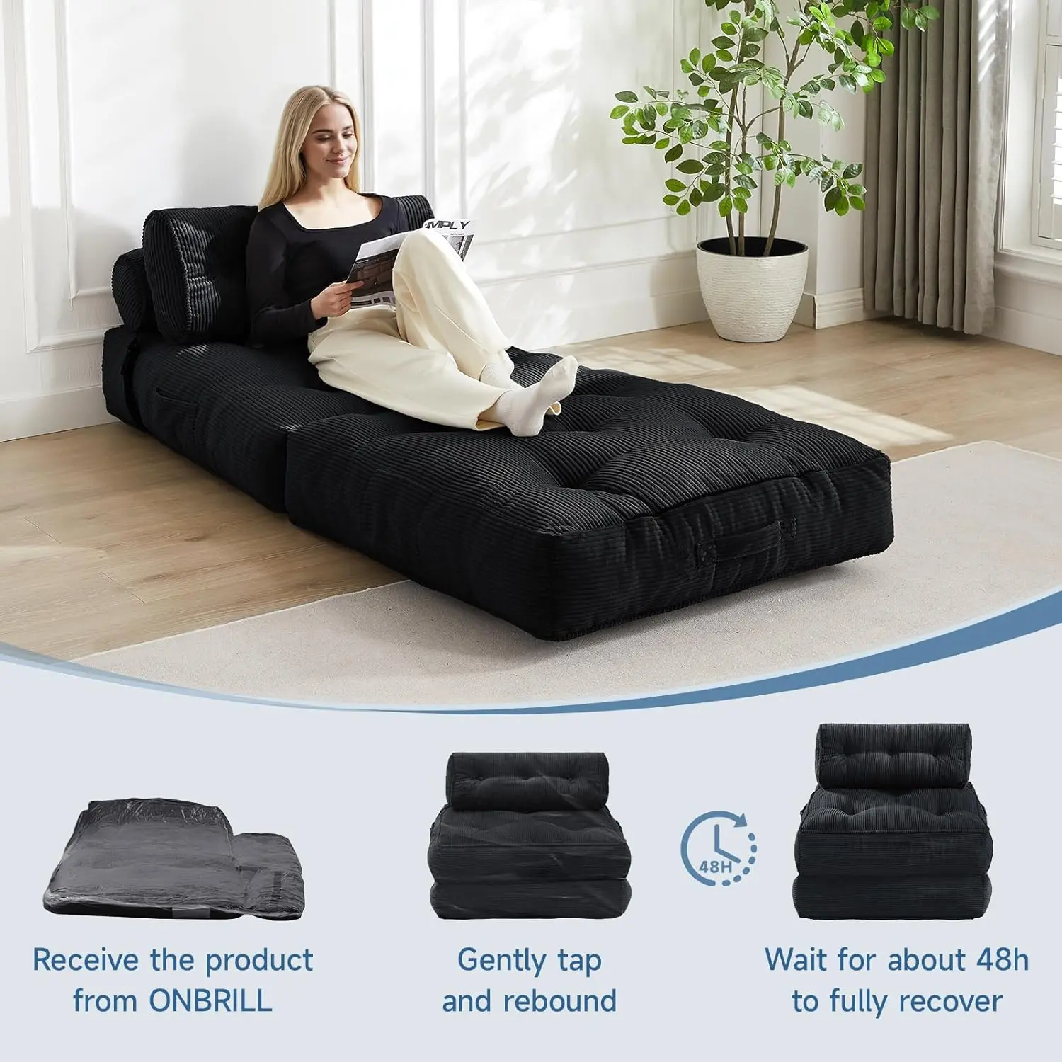 ·HIGH-DENSITY REBOUND SPONGE: The ONBRILL convertible sleeper sofa sleep chair bed for adults features high-density memory foam that provides exceptional comfort, softness, strong support, and quick rebound.