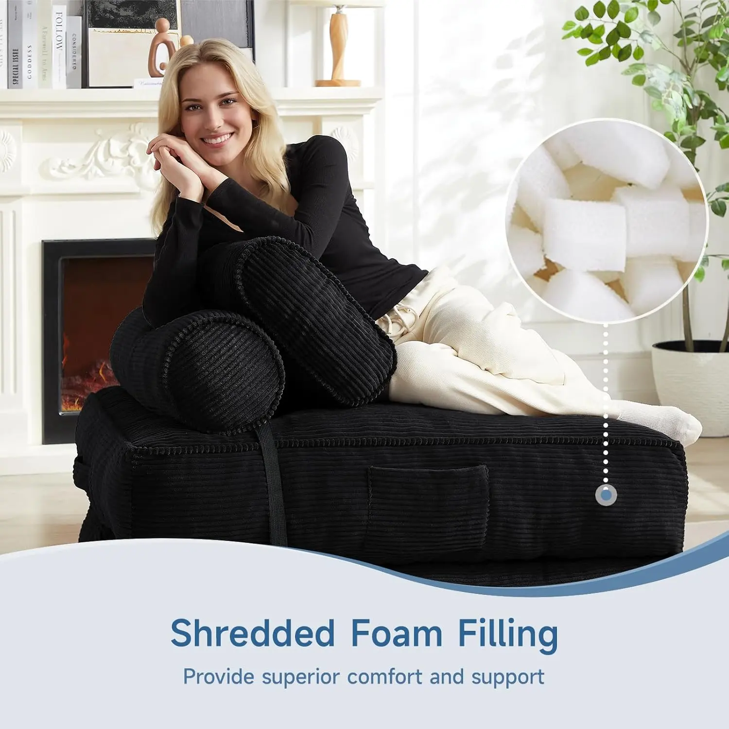 ·VERSATILE AND CREATIVE: This floor sofa comes in a variety of colors, making it easy to match any interior decor and adding creativity to your space. By incorporating additional foldable chairs, you can create a personalized and imaginative decorating style.
