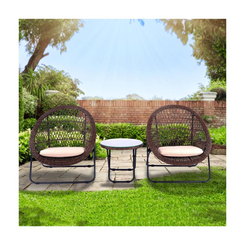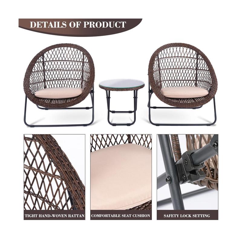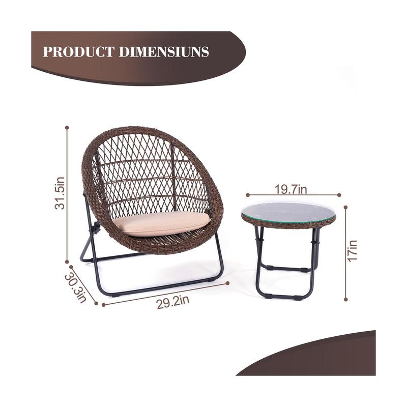 Transform your outdoor space with this bistro set designed for both comfort and convenience. Enjoy thick, soft cushions on each chair for a truly comfortable seating experience, while the nonslip pads ensure stability. The foldable chairs and easy-to-clean glass tabletop make this set perfect for small balconies or patios, offering a blend of functionality and style. From Backyard Expressions.