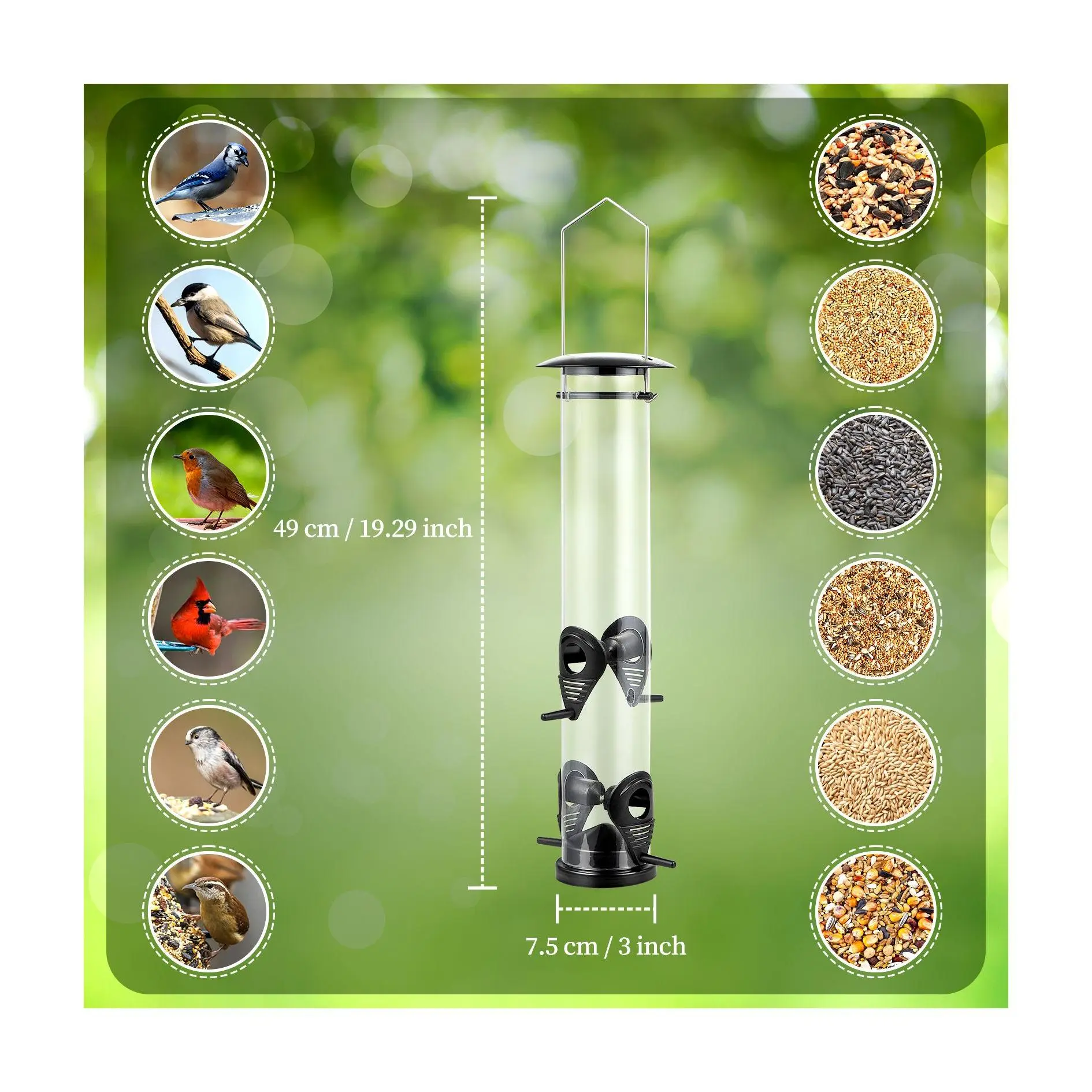 ·Includes 4-cup tube bird feeder