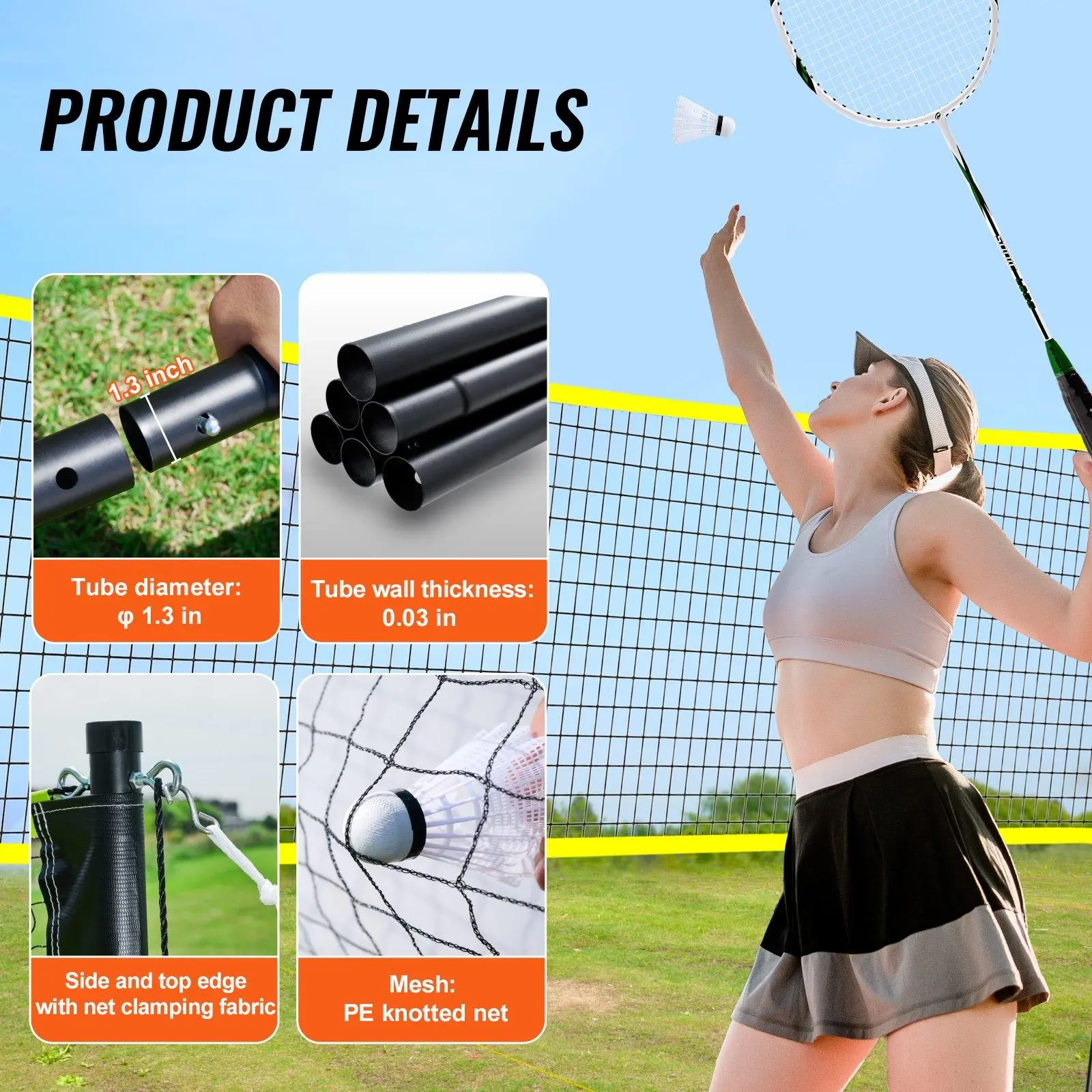 ·Durable Material: Uses a standard 20x5ft badminton net, PE knotted mesh, 4-inch side sleeves, and 1.25-inch top and bottom net clamping fabric. It is tear-resistant and offers reliable safety and sturdiness.