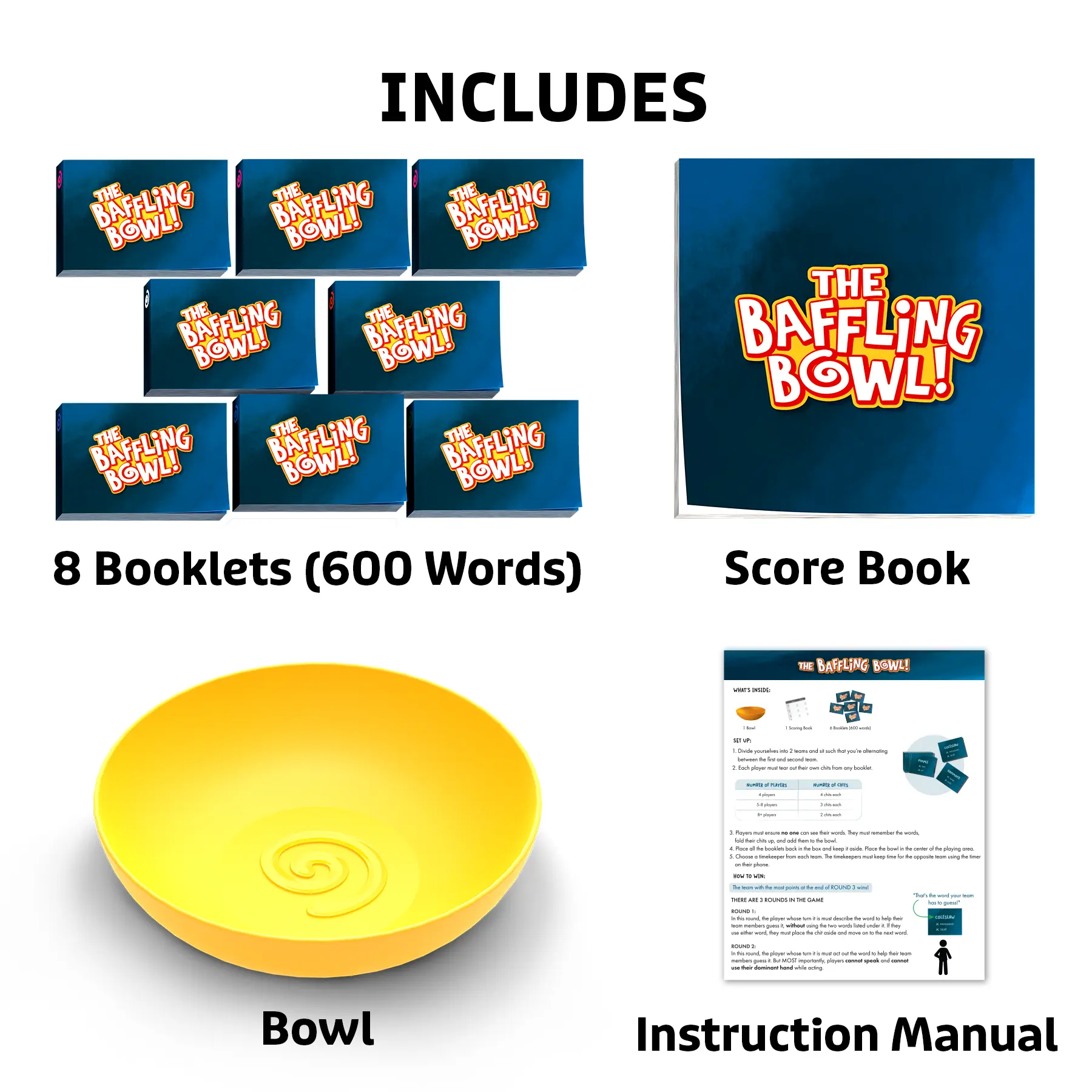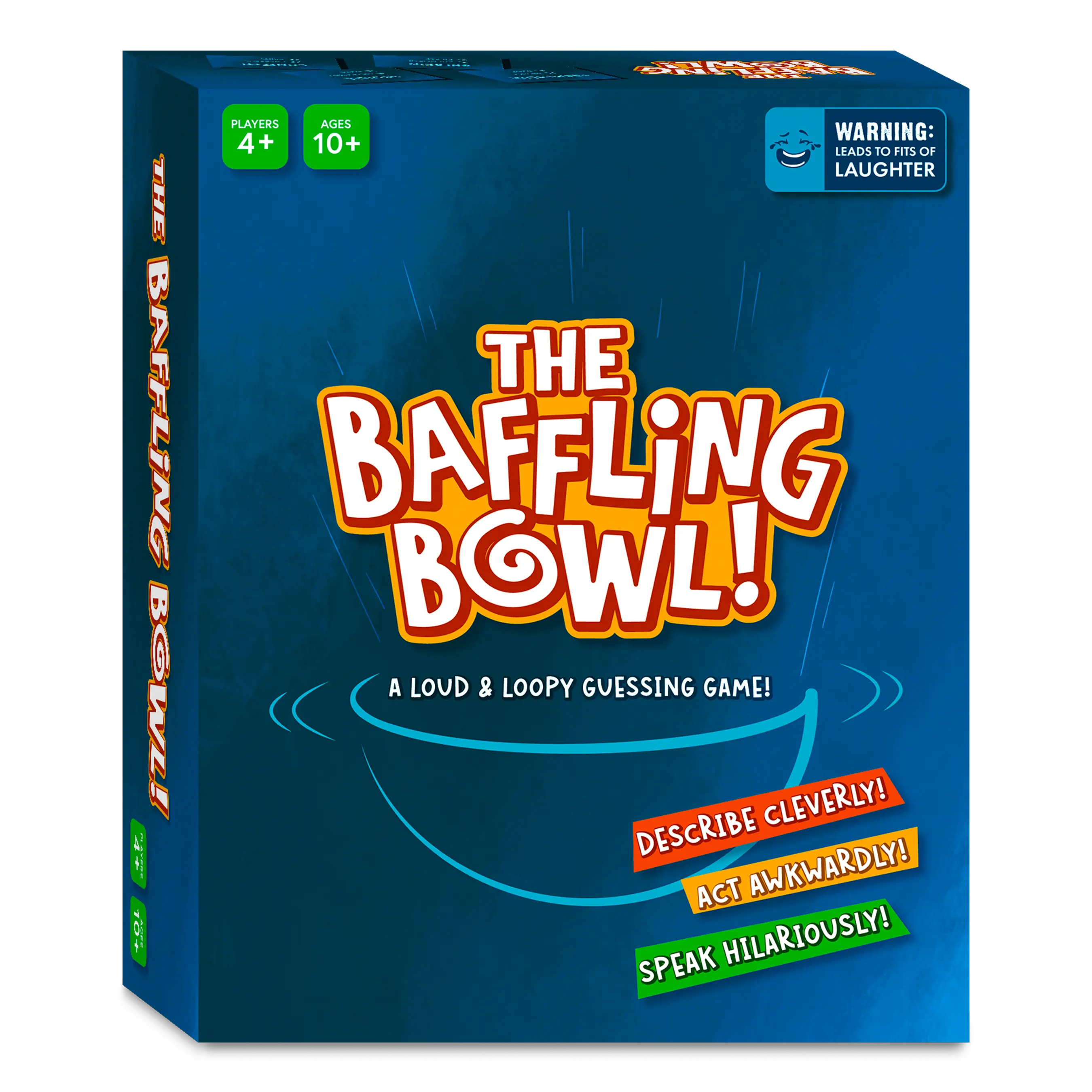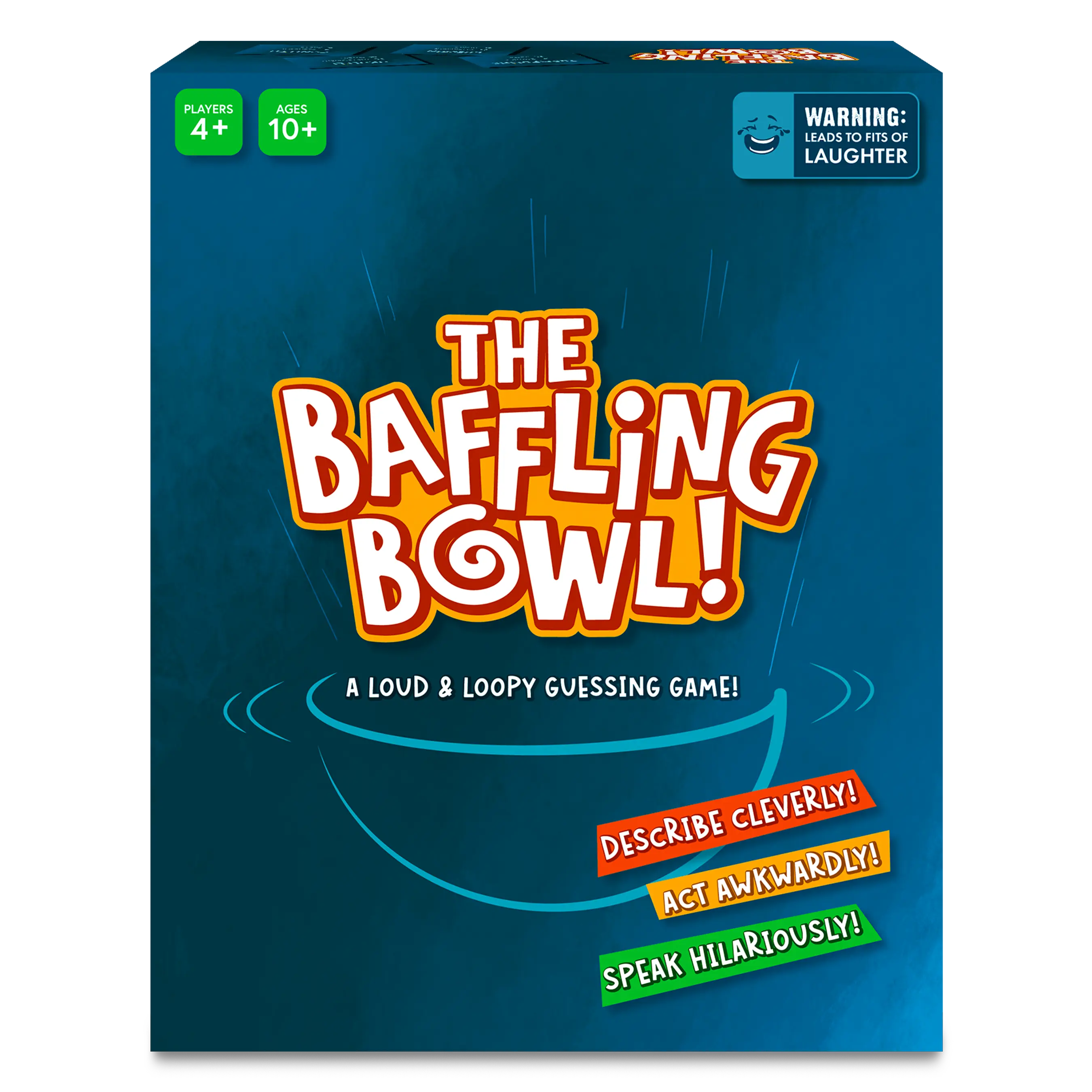 ·A loud & loopy guessing game: Baffling Bowl is a fun and fast-paced game of quick thinking! Team up and battle it out over 3 exciting rounds. Describe words, act them using your non-dominant hand, and talk your best gibberish as you read your word backwards!